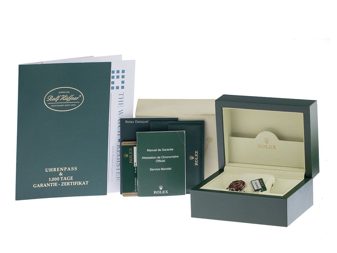 Inklusive certified pre owned Zertifikat / Uhrenpass mit einem Farbbild, der genauen Beschreibung sowie dem Wiederbeschaffungswert der Uhr über 14800,-€ und 1000 Tage Garantie ab Kaufdatum.