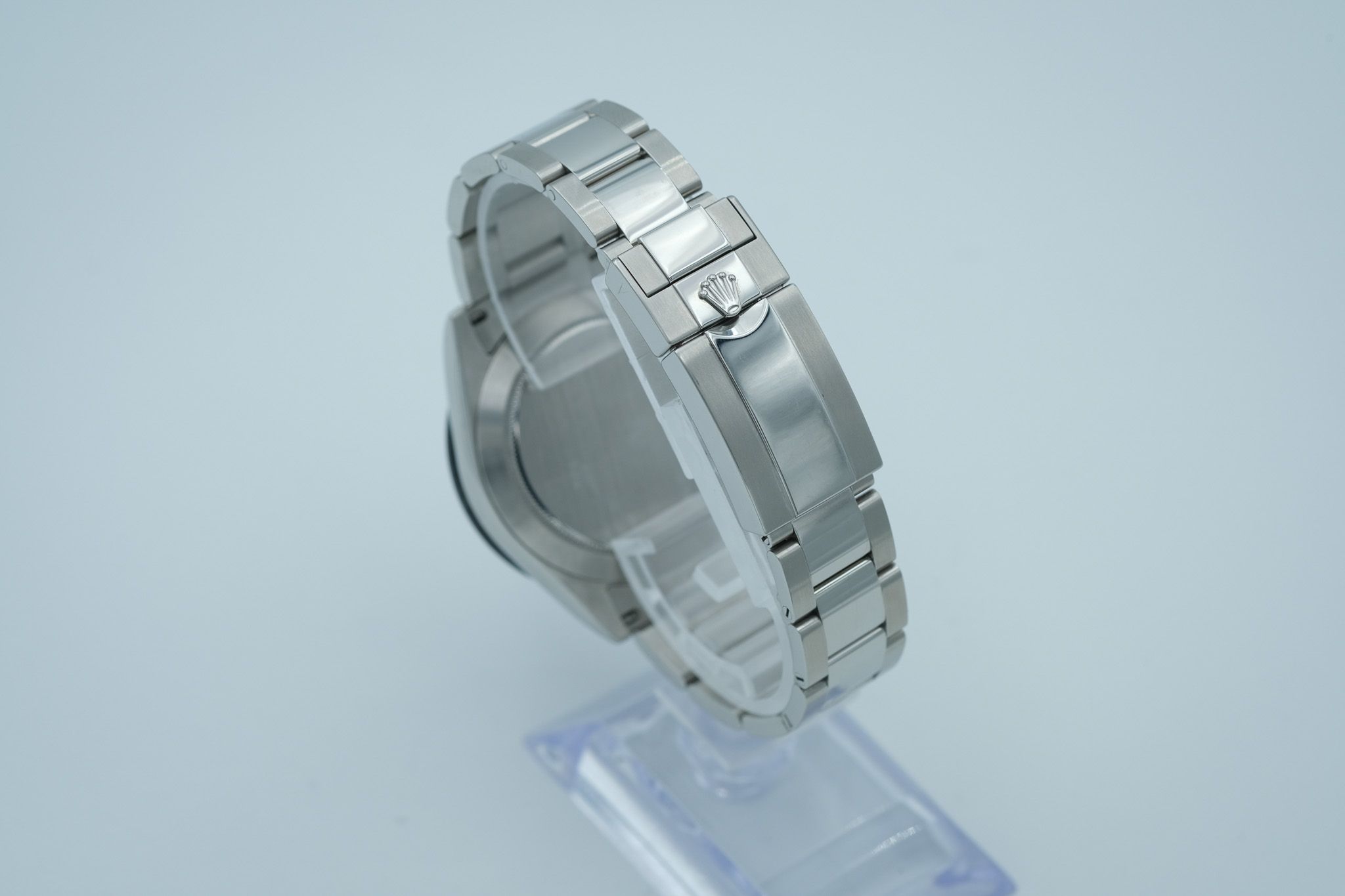 The watch is in very good condition with only slight signs of wear on the case. The strap has slight superficial swirls on the clasp, but no deep scratches or dents. The watch has never been polished.