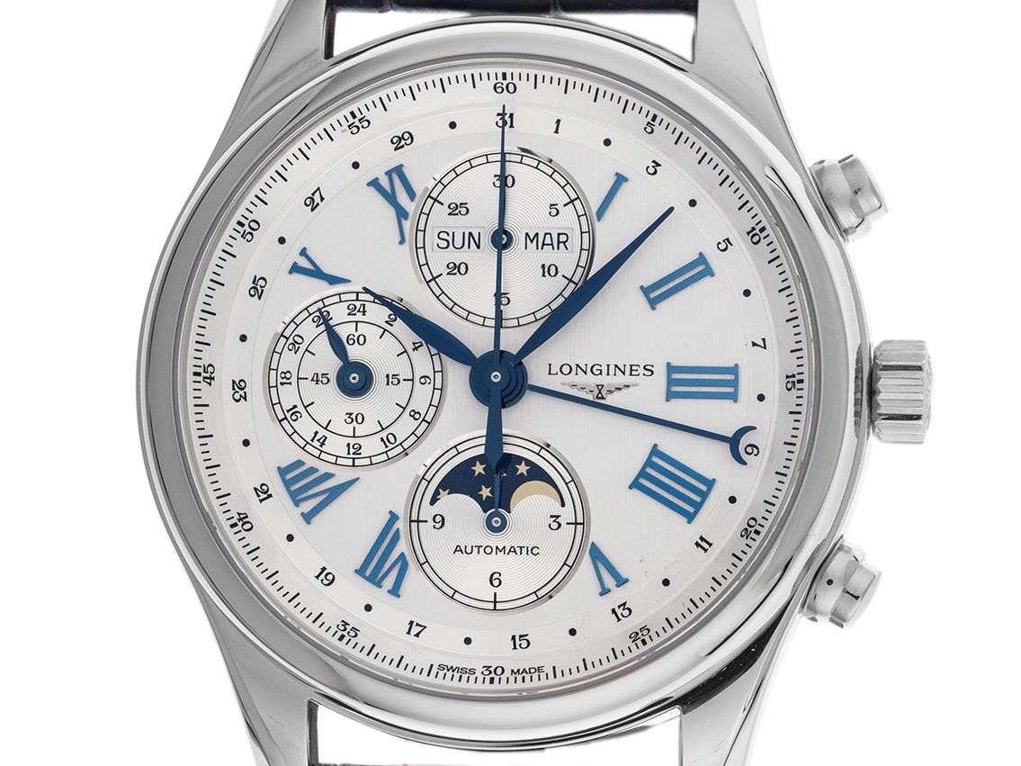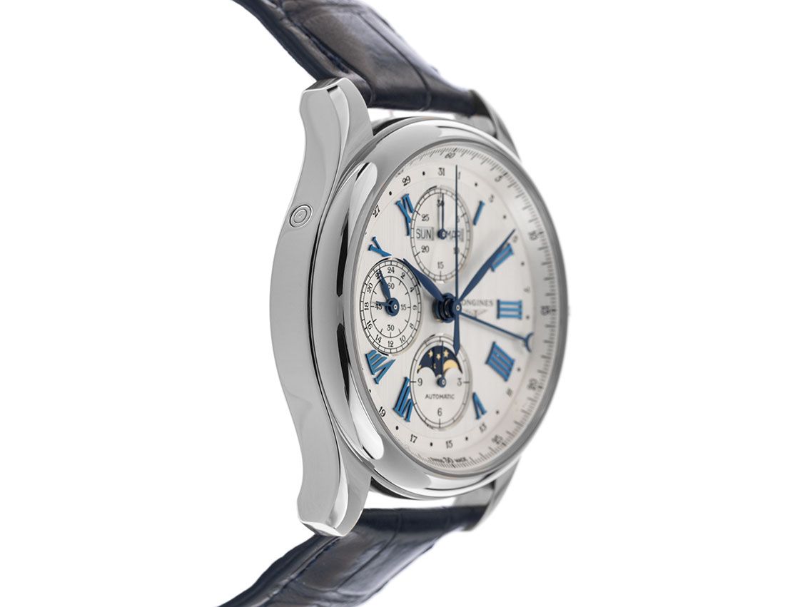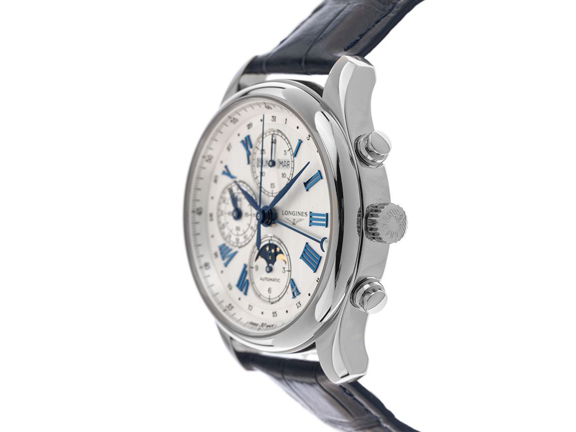 Longines Master Collection Chronograph Mondphase Stahl Automatik Armband Krokoleder Faltschließe