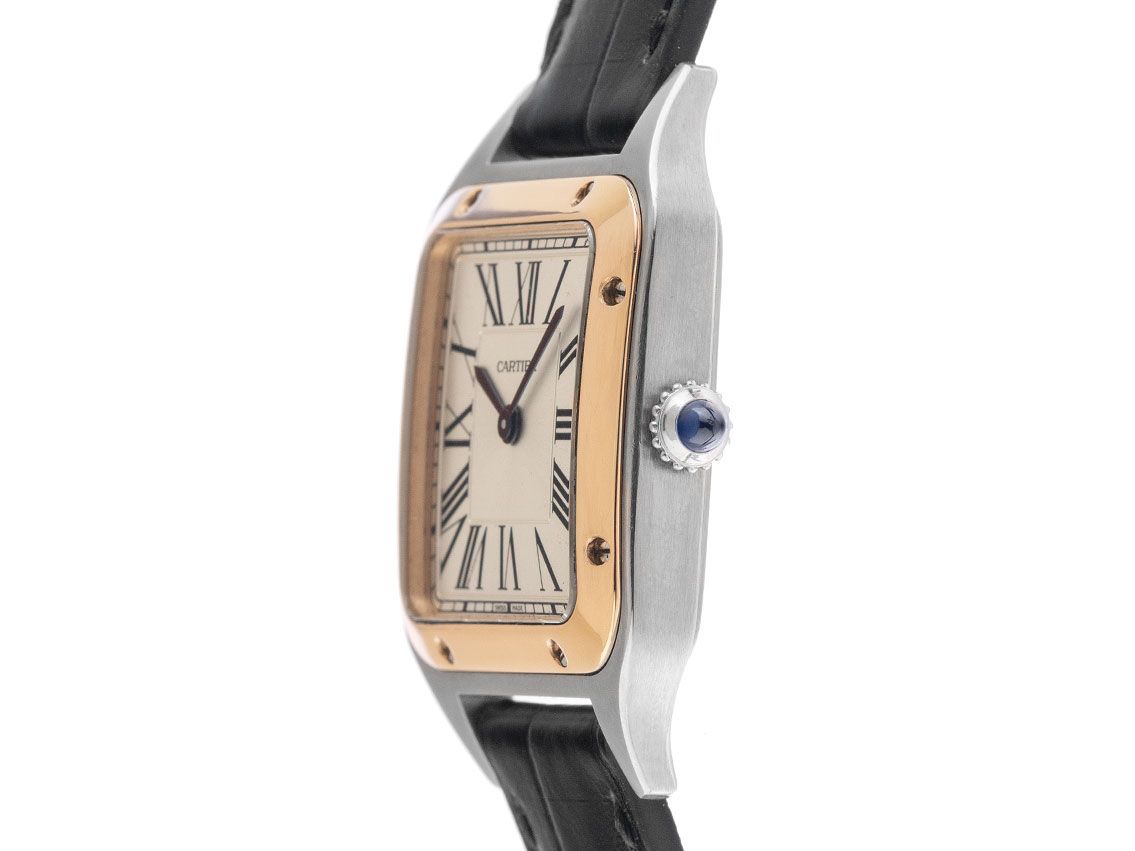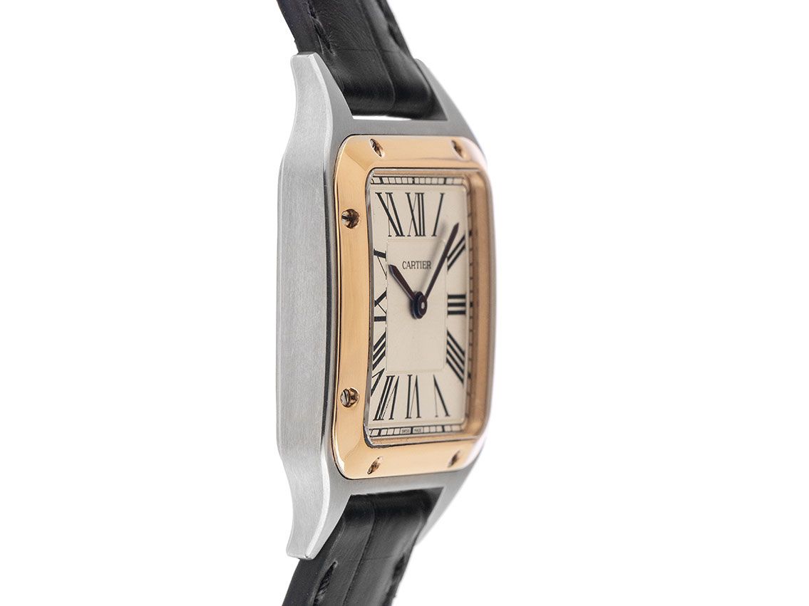 Cartier Santos Dumont PM kleines Modell Stahl 18kt Roségold Quarz Armband Leder