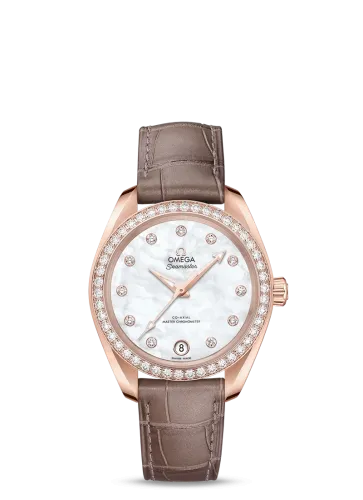 Omega 220.58.34.20.55.001 Seamaster Aqua Terra 150M Master Chronometer 34 Sedna Gold / Diamond / MOP / Alligator