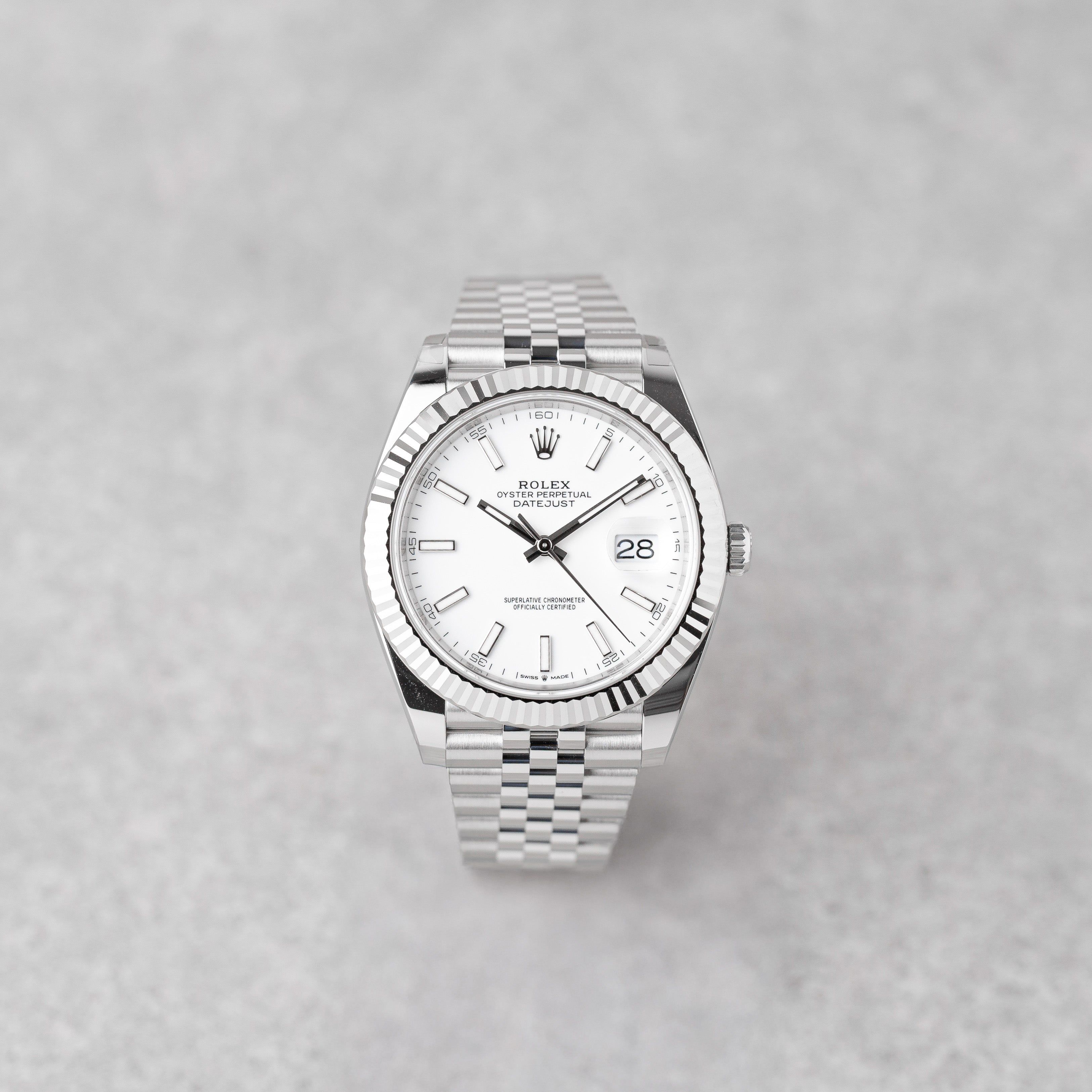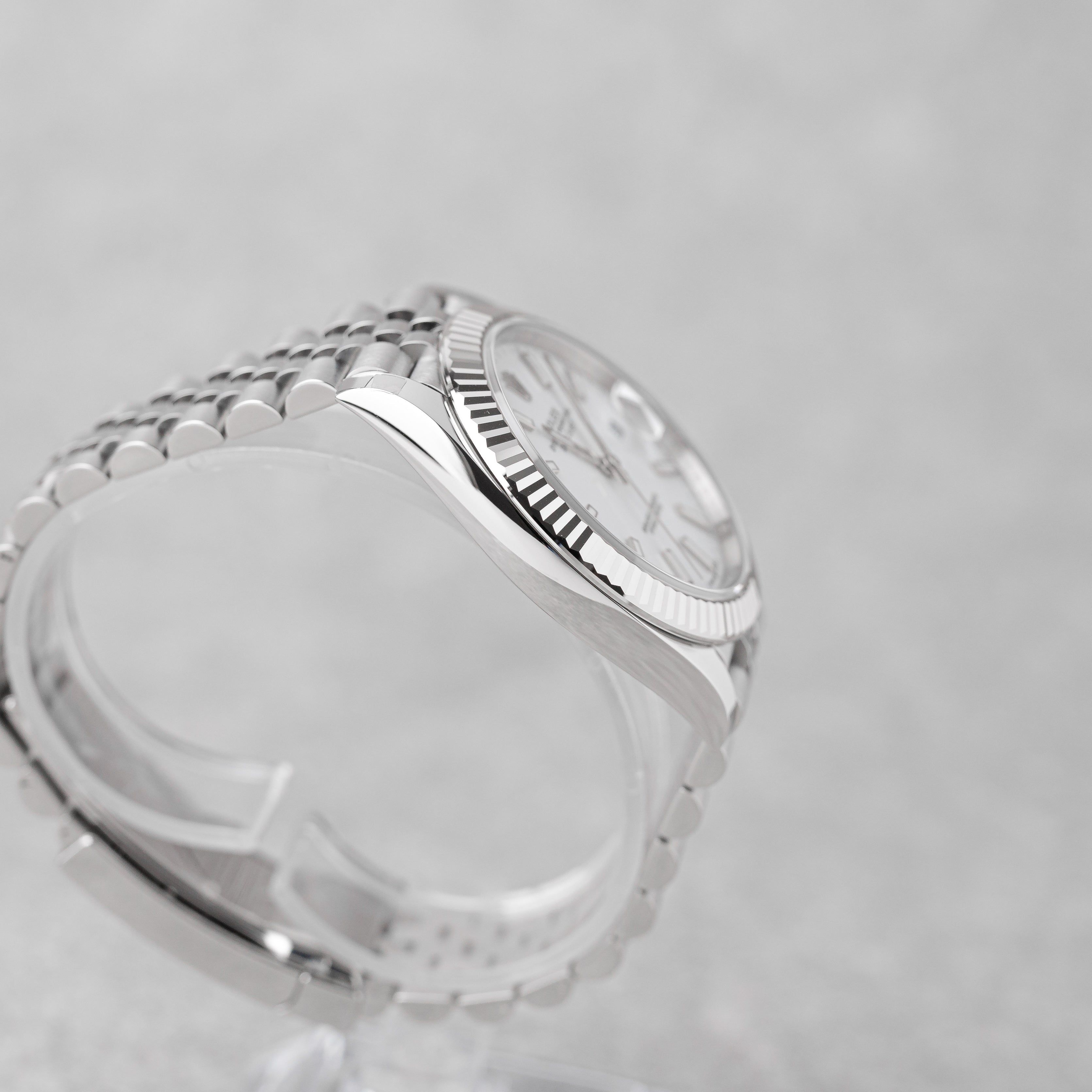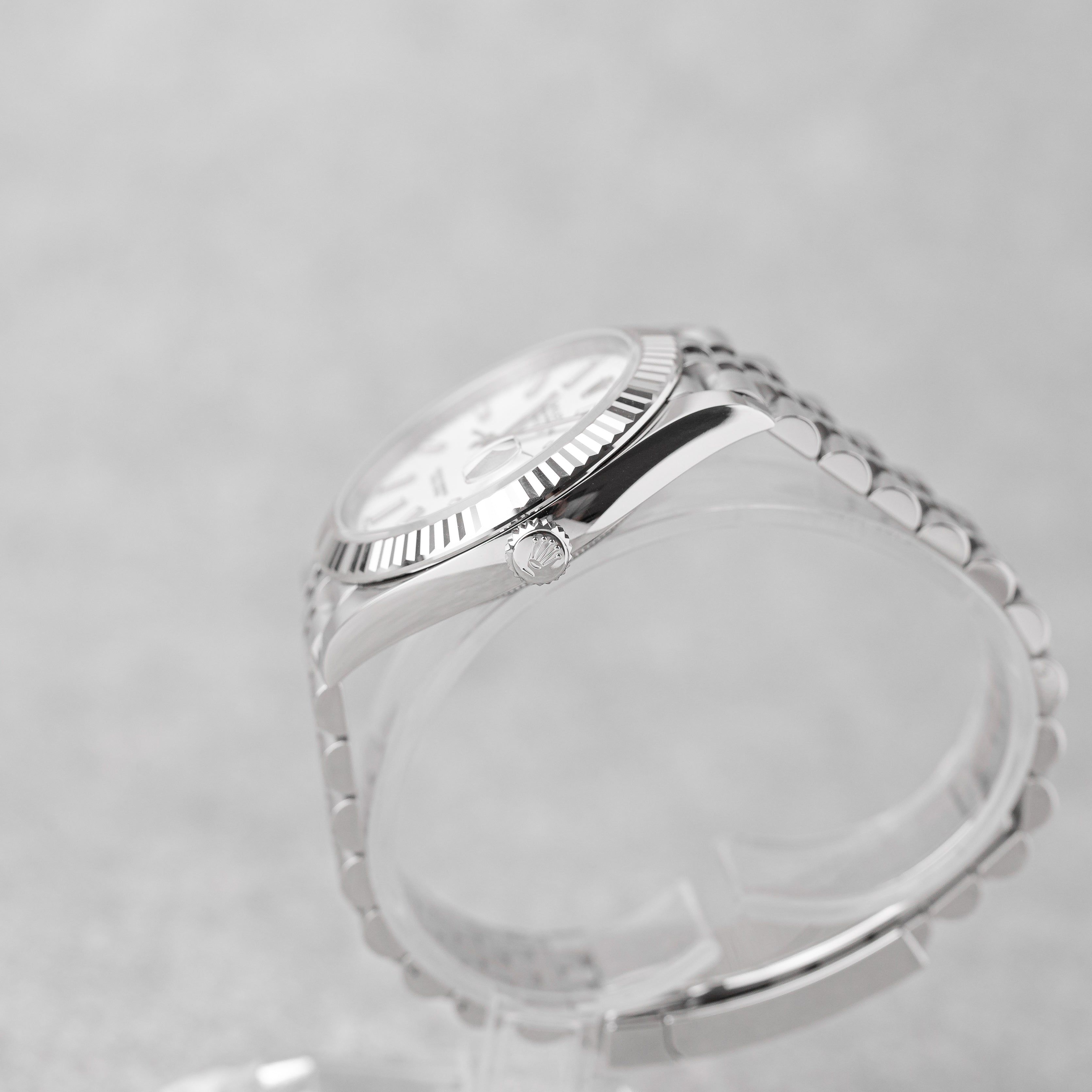 This elegant Rolex Datejust 41 features the white dial, a white gold fluted bezel, and the classic Jubilee bracelet. Delivered as a Full Set with original invoice from 10/2025, it is in new condition and covered by the 5-year Rolex international guarantee.A timeless and versatile Rolex, perfect for daily wear or collection.