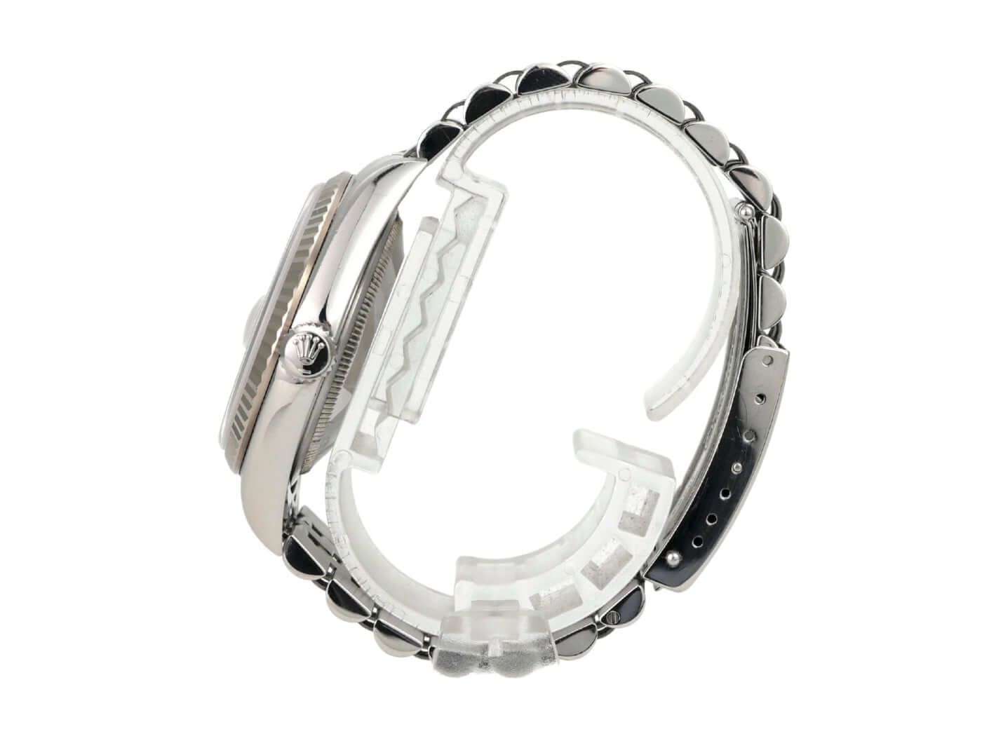 Case made of polished and satin-finished stainless steel, case diameter 36 mm, case height 11.7 mm, 18 kt white gold fluted bezel, polished and satin-finished Jubilee stainless steel bracelet with folding clasp, white dial with applied Roman numerals, automatic movement, chronometer, Rolex 3135 with 31 jewels, 28,800 A/h, date, sapphire crystal, screw-down crown, screwed stainless steel case back, water-resistant up to 10 bar.