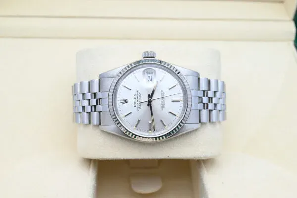 Rolex Datejust Ref. 16014 from 1984 with the silver dial in excellent condition, including the original box.All of our watches have been thoroughly checked by our own watchmaker and serviced when needed.