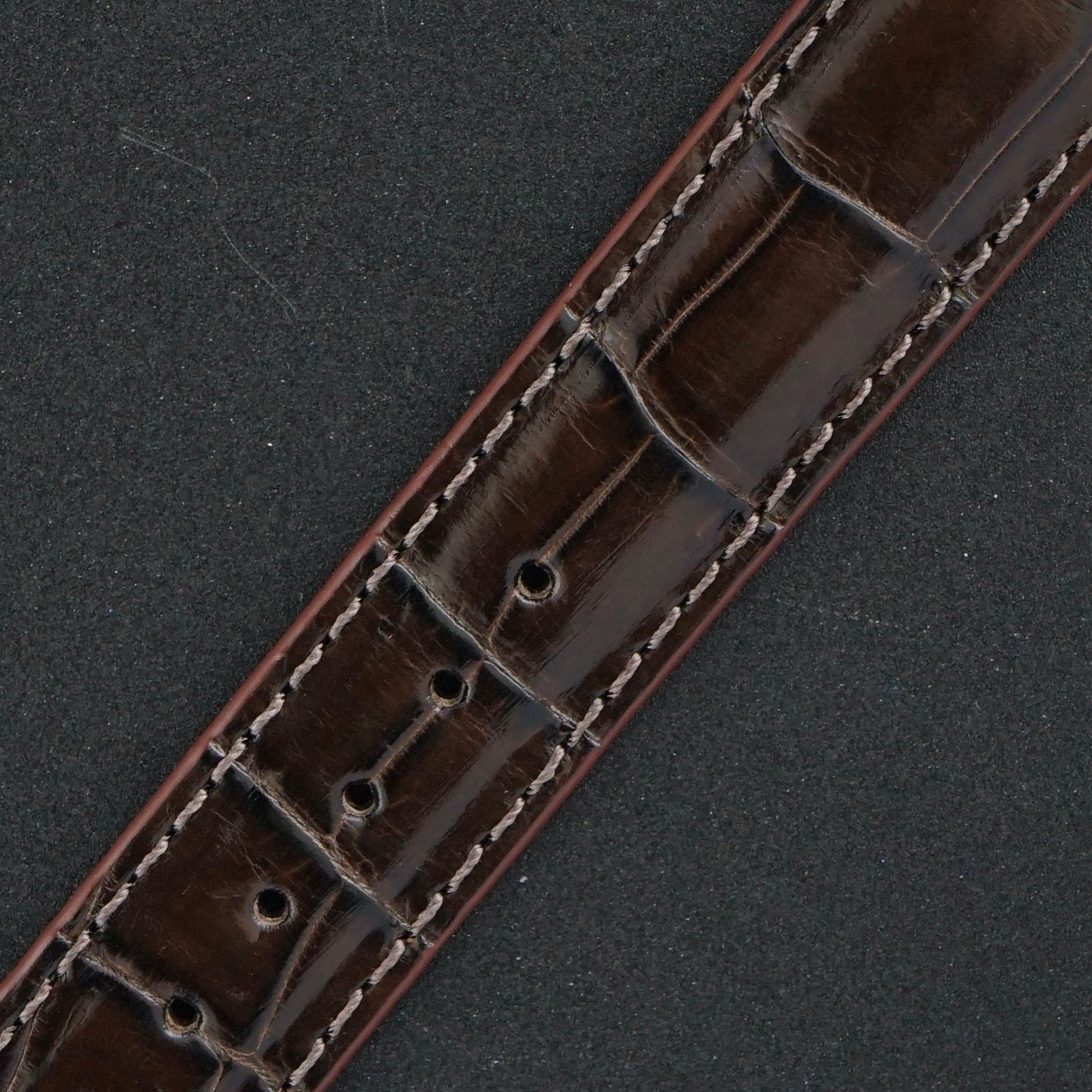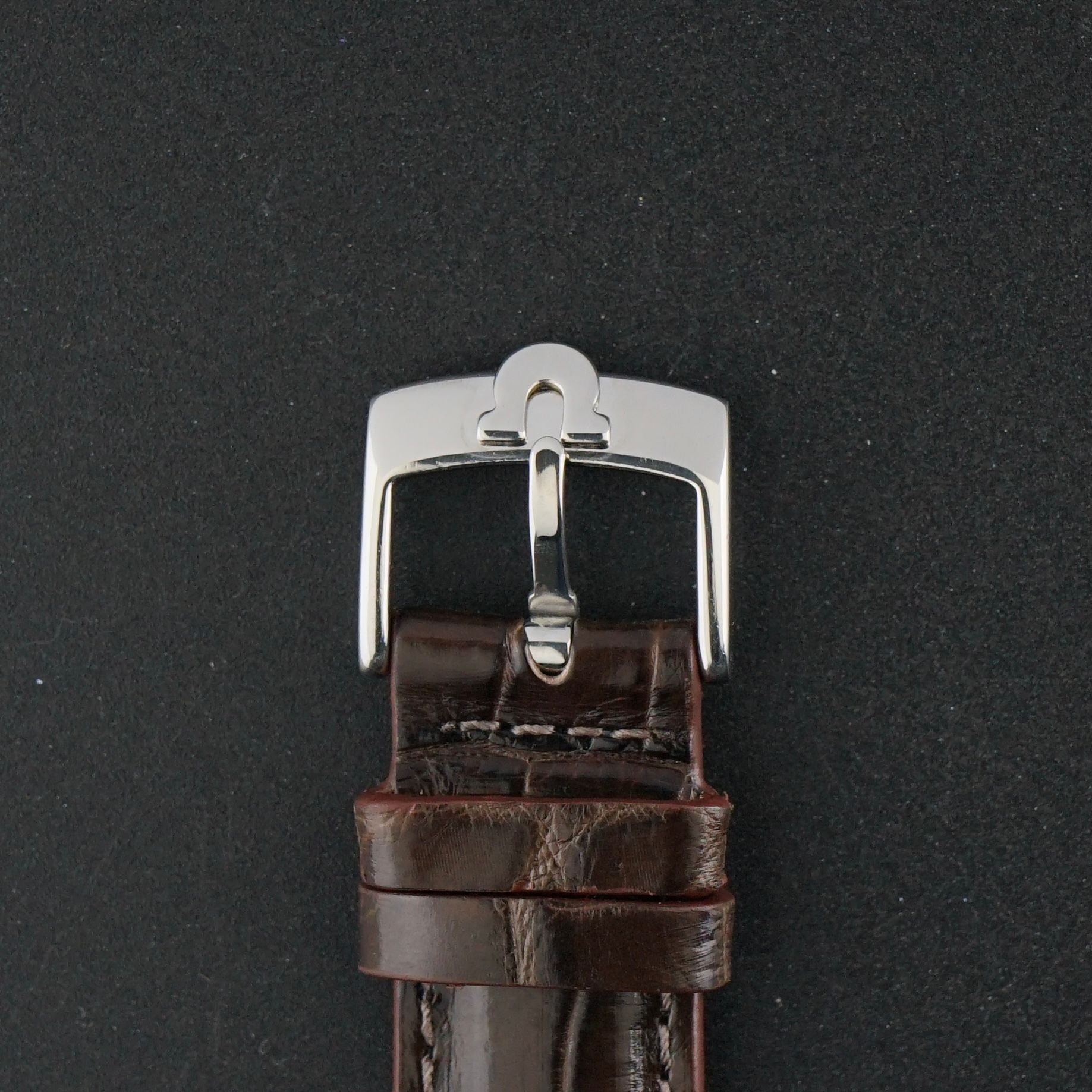 Strap: A brown top grain leather strap with crocodile motif. (Fits a 12 to 19,5cm wrist)