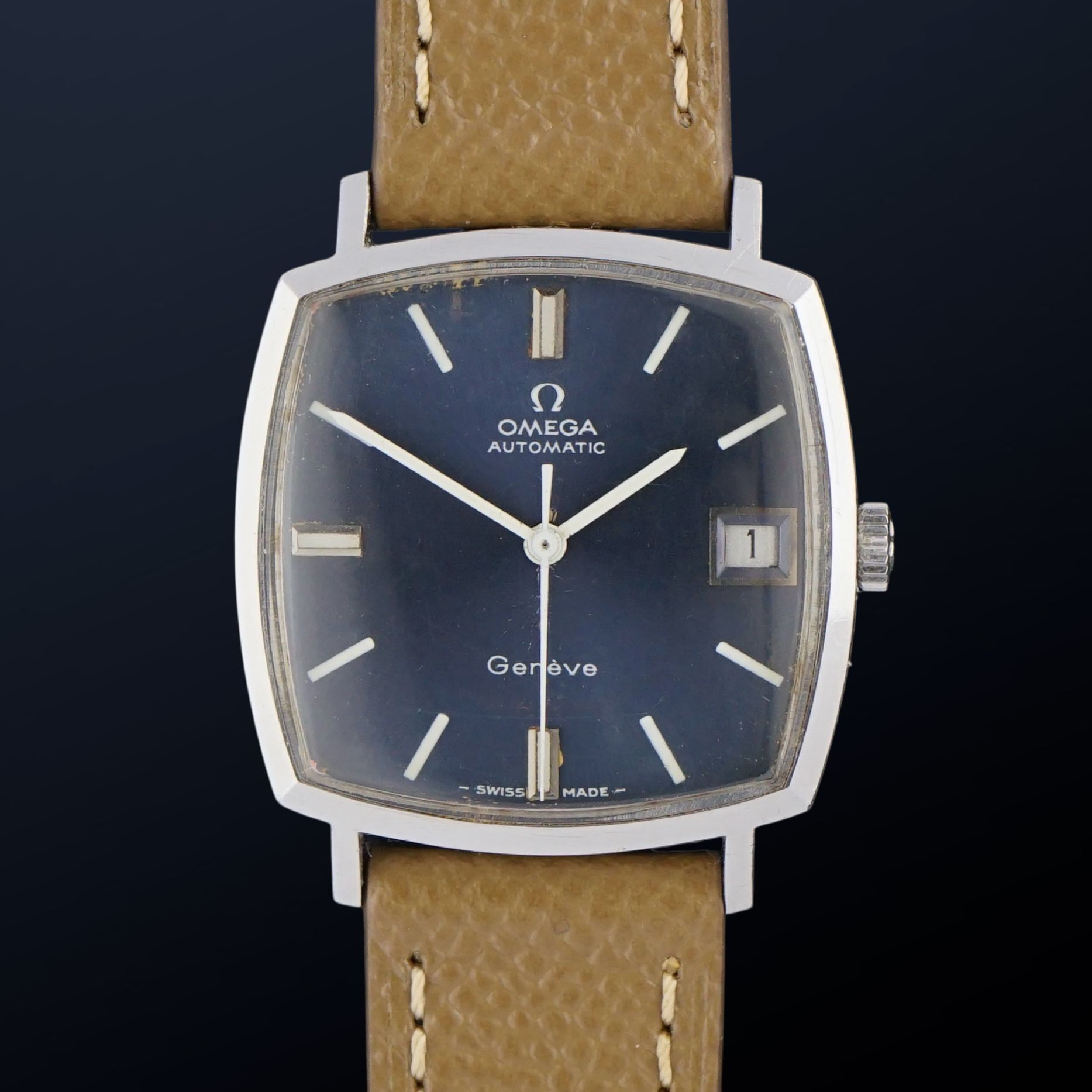 Vintage Omega Genève Automatic Blue Dial Square Tank 162.010 - 31mm - 1968