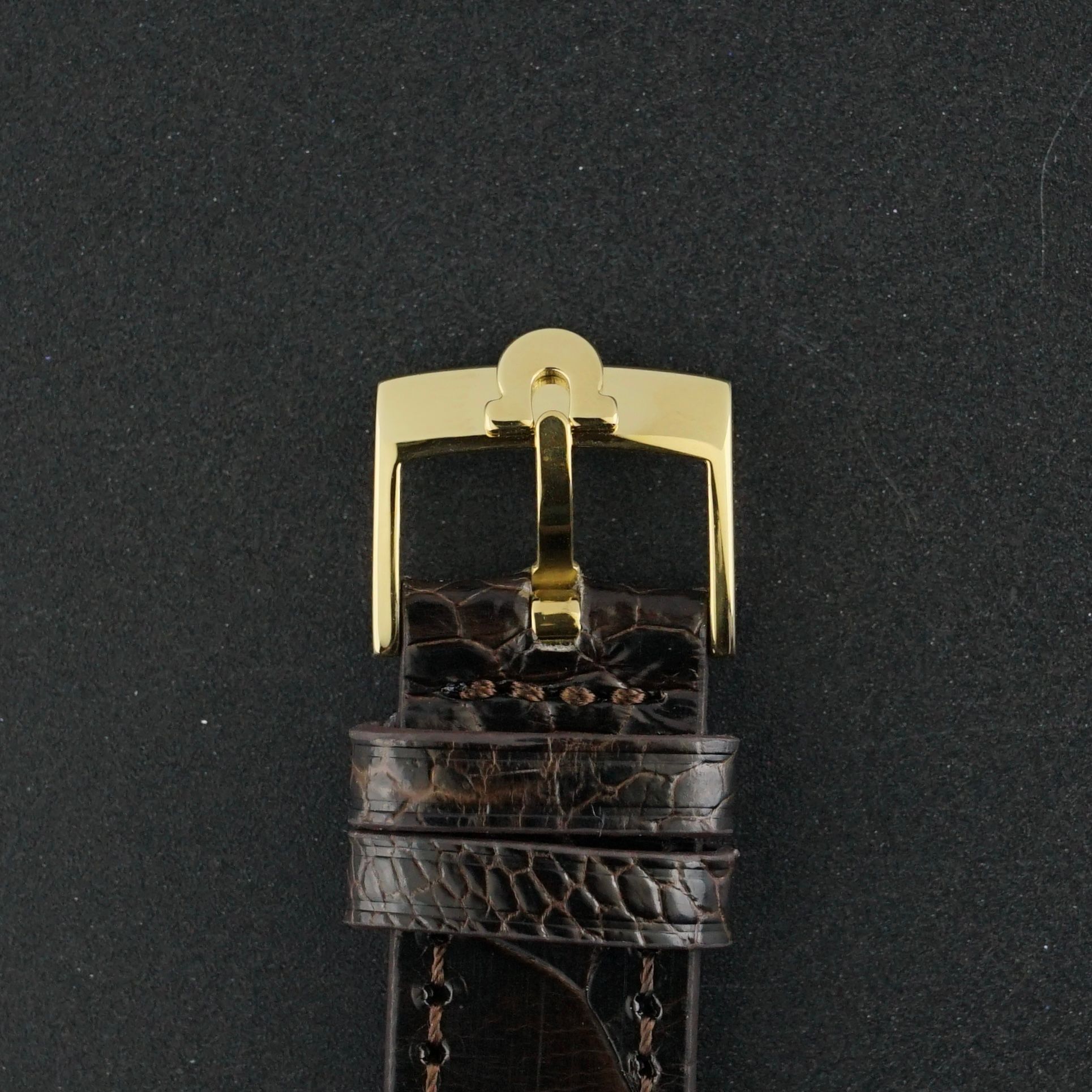 Strap: Grade III brown leather strap with a crocodile motif. (Fits a 12 to 20cm wrist)