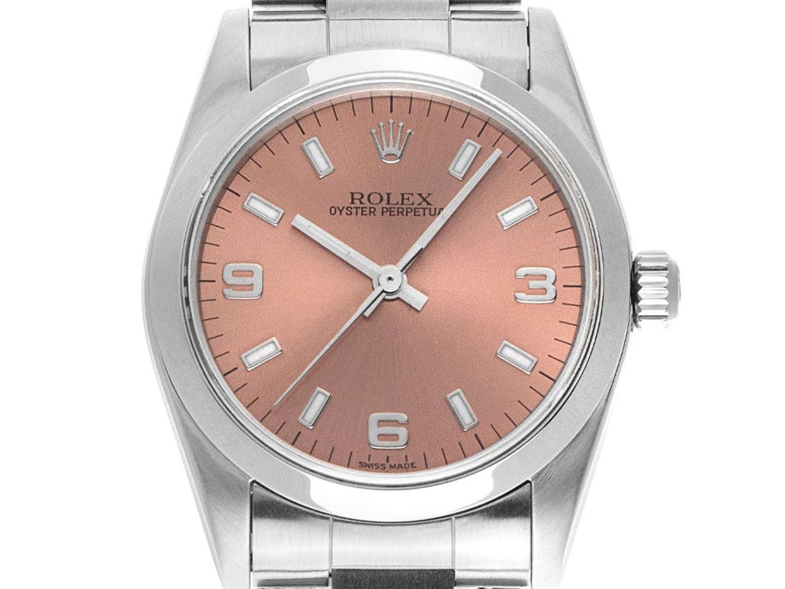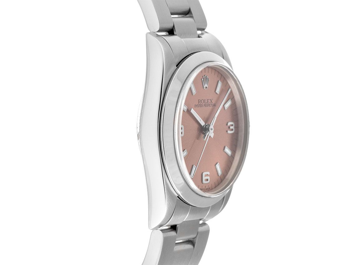 Gehäuse Edelstahl poliert und satiniert, Gehäusedurchmesser ohne Krone 31mm, Gehäusehöhe 10,0mm. Lünette Edelstahl glatt und poliert. Armband Oyster Edelstahl poliert und satiniert, Rolex Faltschließe Edelstahl mit Hersteller-Logo. Zifferblatt roséfarben mit aufgesetzten weißgoldenen Indexen und arabischen Ziffern sowie weißgoldenen Zeigern. Uhrwerk Automatik, Chronometer mit Zeugnis, Rolex Manufakturkaliber 2230 mit 31 Edelsteinen. Anzeige von Stunde, Minute und Sekunde über Zeiger aus der Mitte mit Sekundenstopp zur sekundengenauen Einstellung der Uhrzeit. Saphirglas kratzfest. Krone verschraubbar mit Hersteller-Logo. Boden Edelstahl verschraubt. Gewicht der Uhr inklusive Armband 77g, Länge des Armbandes inklusive Gehäuse 185mm. Referenznummer: 77080, Gehäusenummer: Z231XXX, ID: P234284000126H-7800, Artikelnummer: 10000084386. Mit Gangkontrolle und kompletter äußerlicher Aufarbeitung von Januar 2026. Original Rolex Box mit Umkarton und Garantie Papiere von September 2006, LC 100 / Germany EU sowie Beschreibung, Übersetzungsheft, Ledermäppchen, Rolex Chronometer-Siegel, Tag und Watchregister Auszug von Januar 2026, The Watch Register Zertifikat / ohne Eintrag (Internationale Datenbank für verlorene oder gestohlene Uhren), Full Set. Kapitalanlage mit Wertsteigerungspotential, fast nicht getragen. Sehr guter Zustand. Lieferzeit sofort.