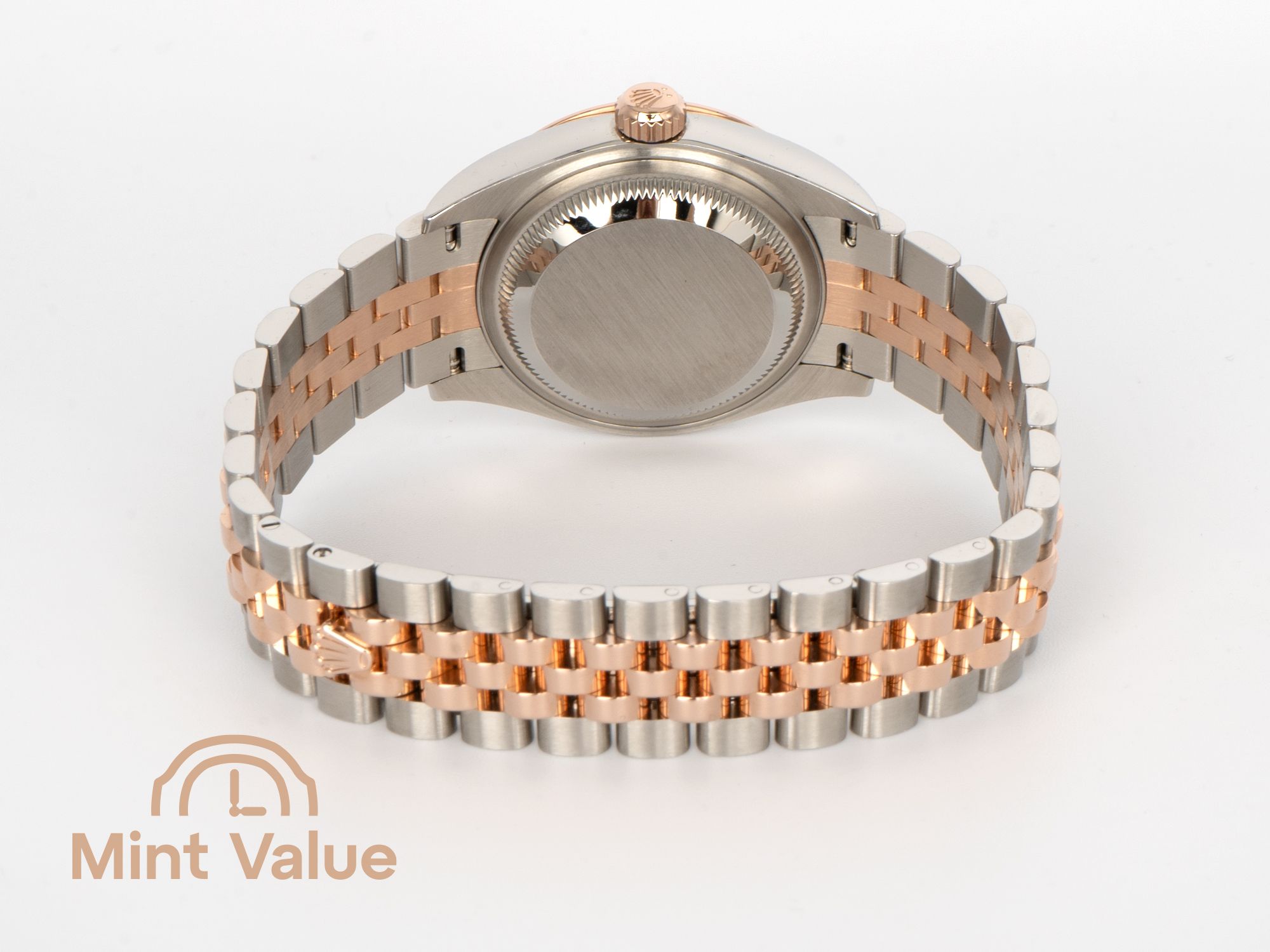Originally designed by Rolex in 1945 for the first Datejust, the five-link Jubilee bracelet offers superior comfort and a more refined visual rhythm. Its polished center links and elegant taper enhance the watch’s feminine character, while the concealed Crownclasp preserves a seamless, jewelry-like appearance.