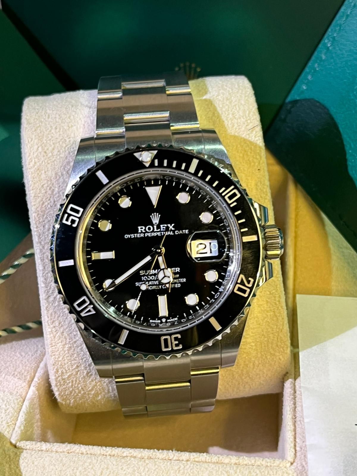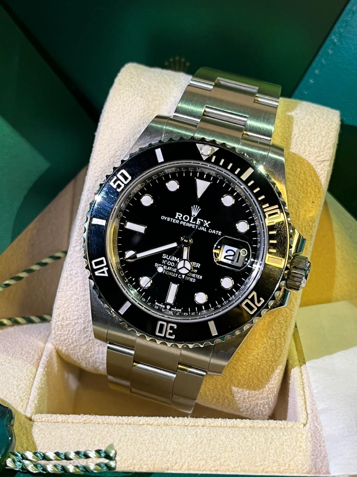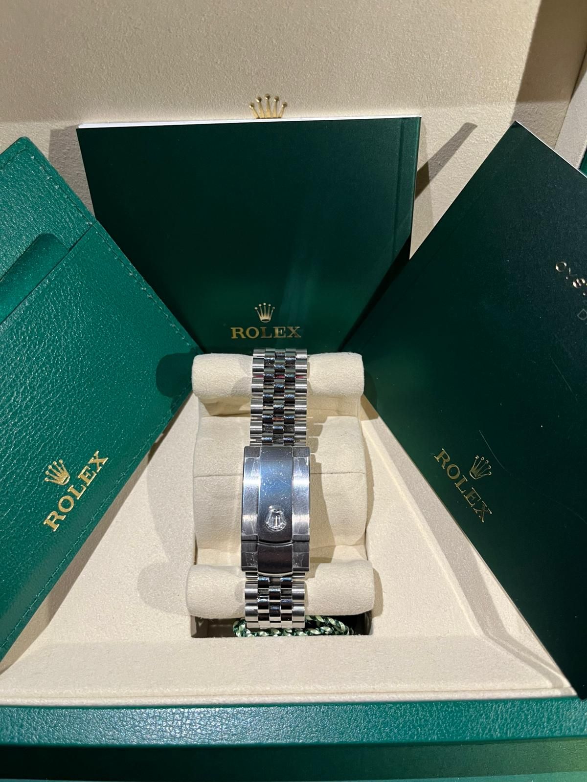 This example is offered in mint condition and is dated 2023. The watch is powered by the Rolex in-house caliber 3235, celebrated for its exceptional precision, robustness, and approximately 70-hour power reserve, and naturally operates within Rolex Superlative Chronometer specifications.