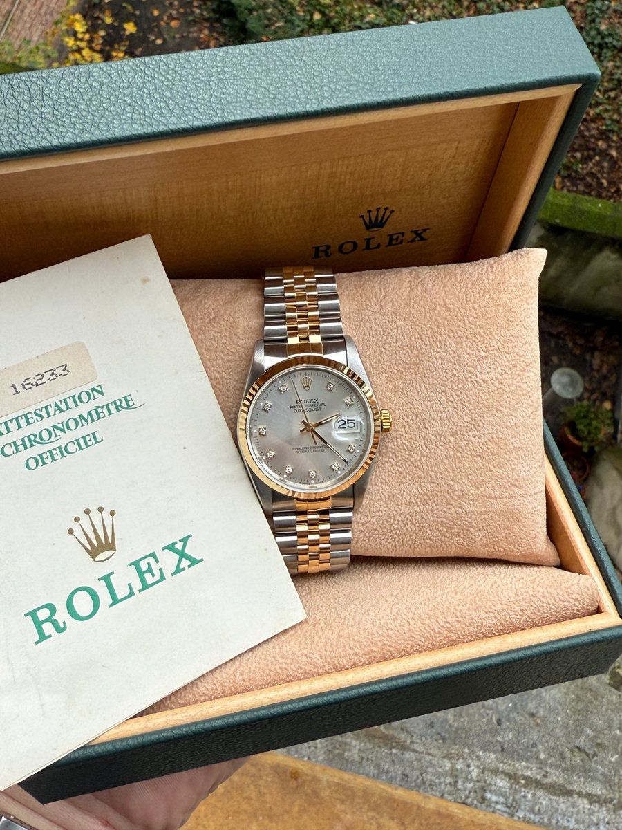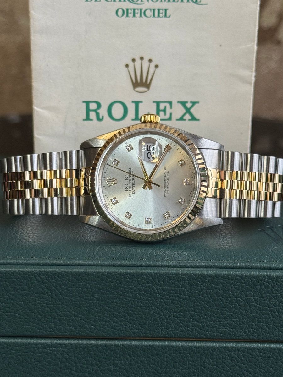 Rolex Datejust 36mm two tone silver diamond dial. Rolex Datejust 36mm two tone silver diamond dial Ref. 16233 Year: 1991 📦 & 📝 1 year warranty Mint condition