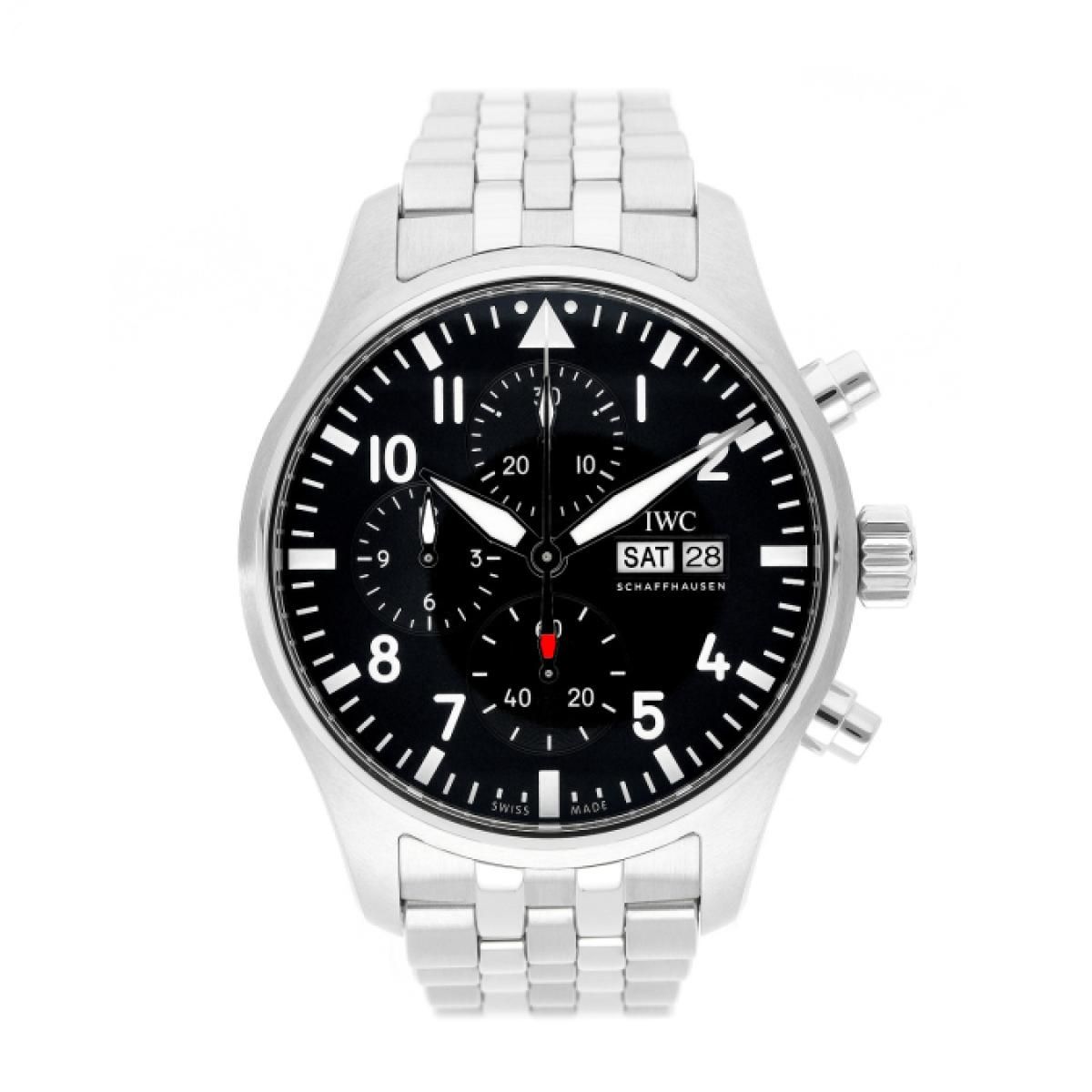 IWC Schaffhausen Pilot from 2025 with a 43 mm stainless steel case and folding clasp. This men's IWC Schaffhausen watch is in unworn condition.