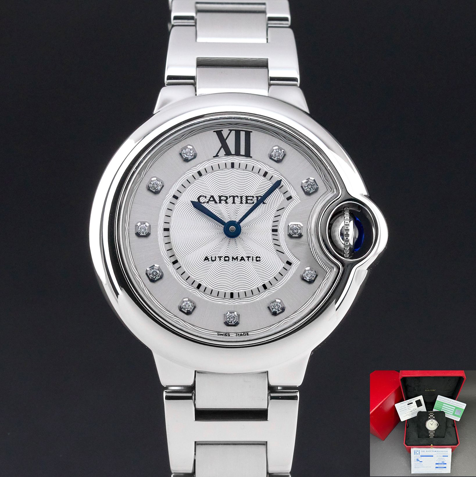 Cartier Ballon Bleu 33mm Cartier Ballon Bleu, W4BB0021, 33mm, 2021, Steel, Silver Diamond dial, Fullset, 1y warranty