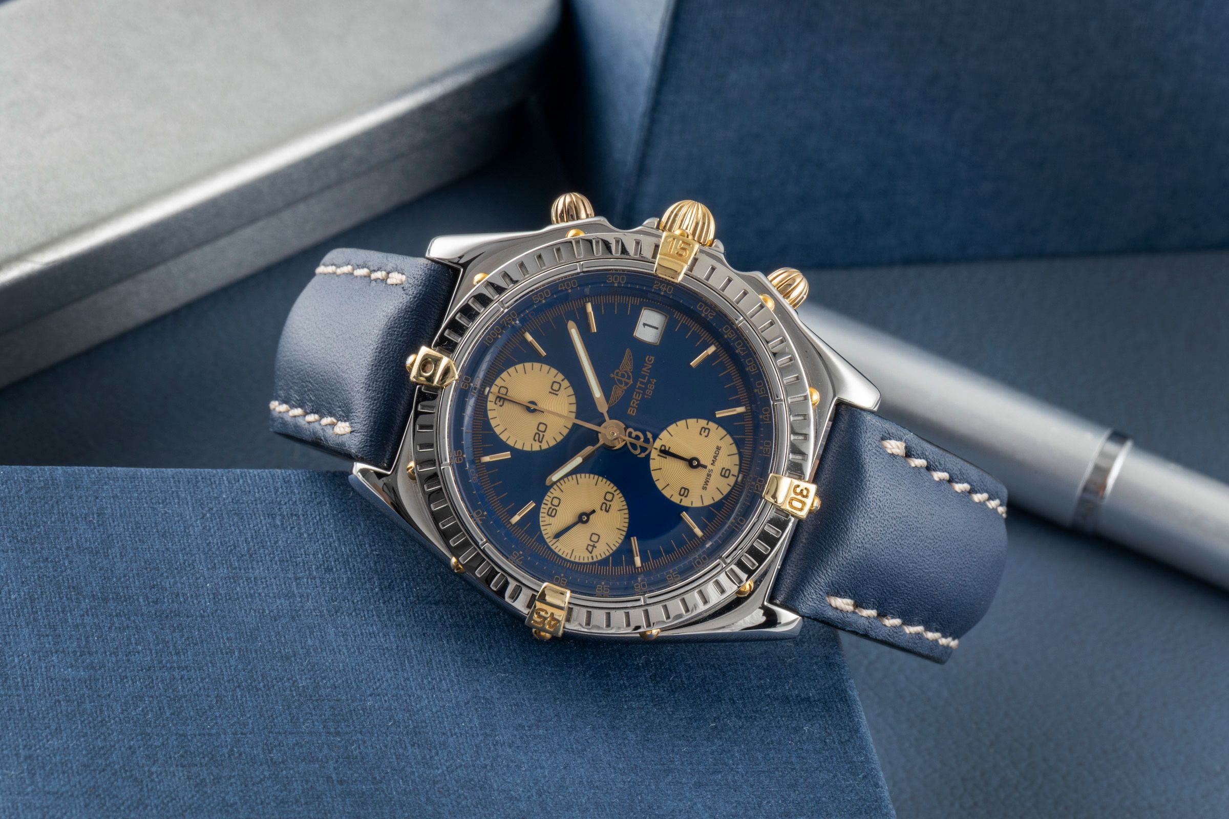 Accessories: Original Breitling box as pictured, Original papers as pictured, Booklets as pictured