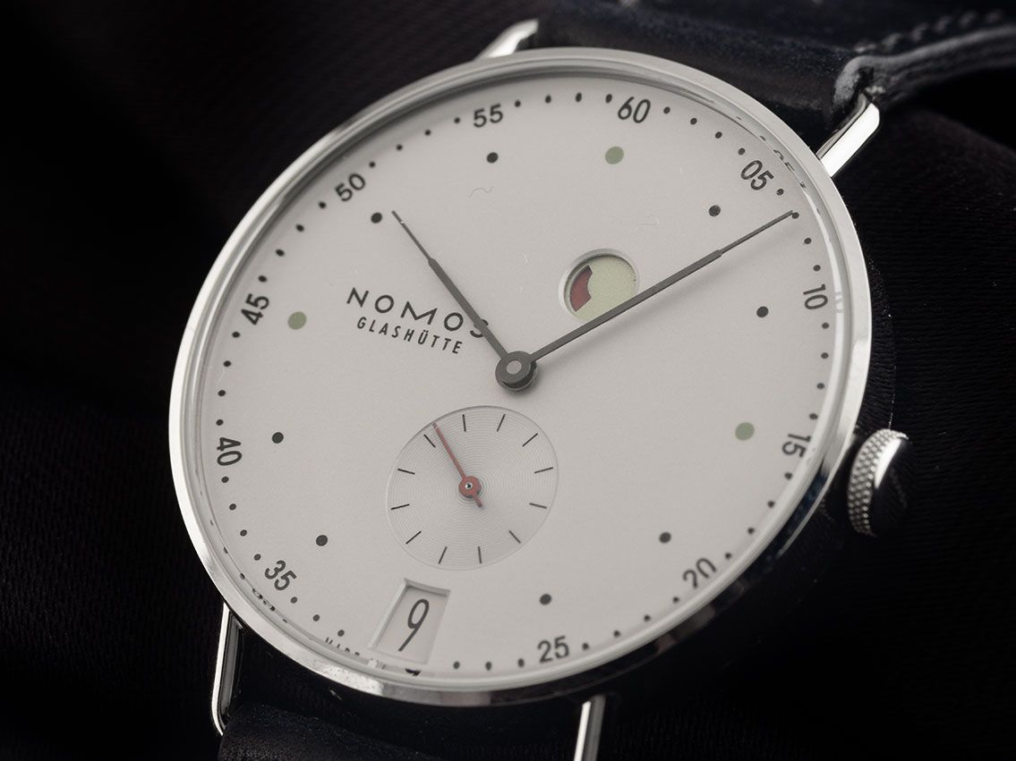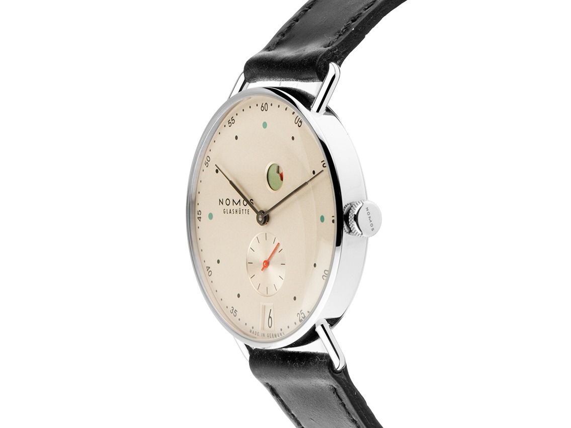 Nomos Glashütte Metro Date Stahl Handaufzug Armband Leder