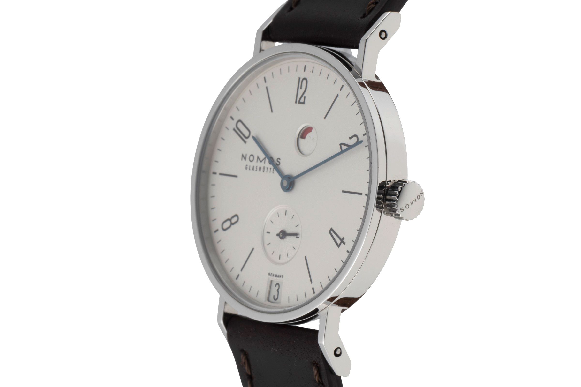 Alternative title: NOMOS 131 Glashütte - Tangente Datum Gangreserve; NOMOS Tangente Datum Gangreserve Handaufzug Ref. 131 Klassiker VP: 2980,- € [2600227]