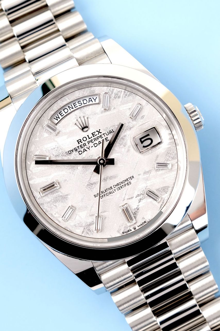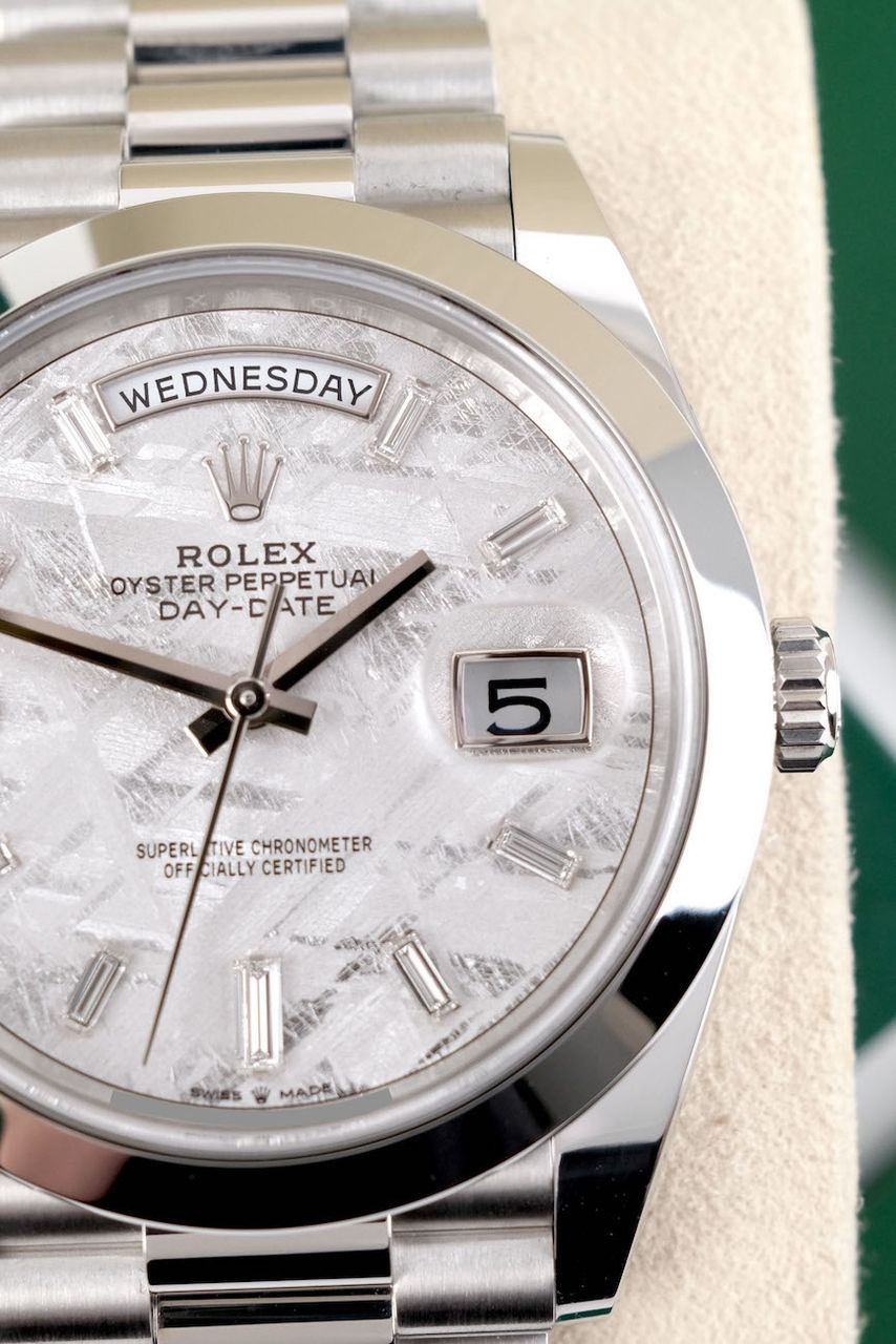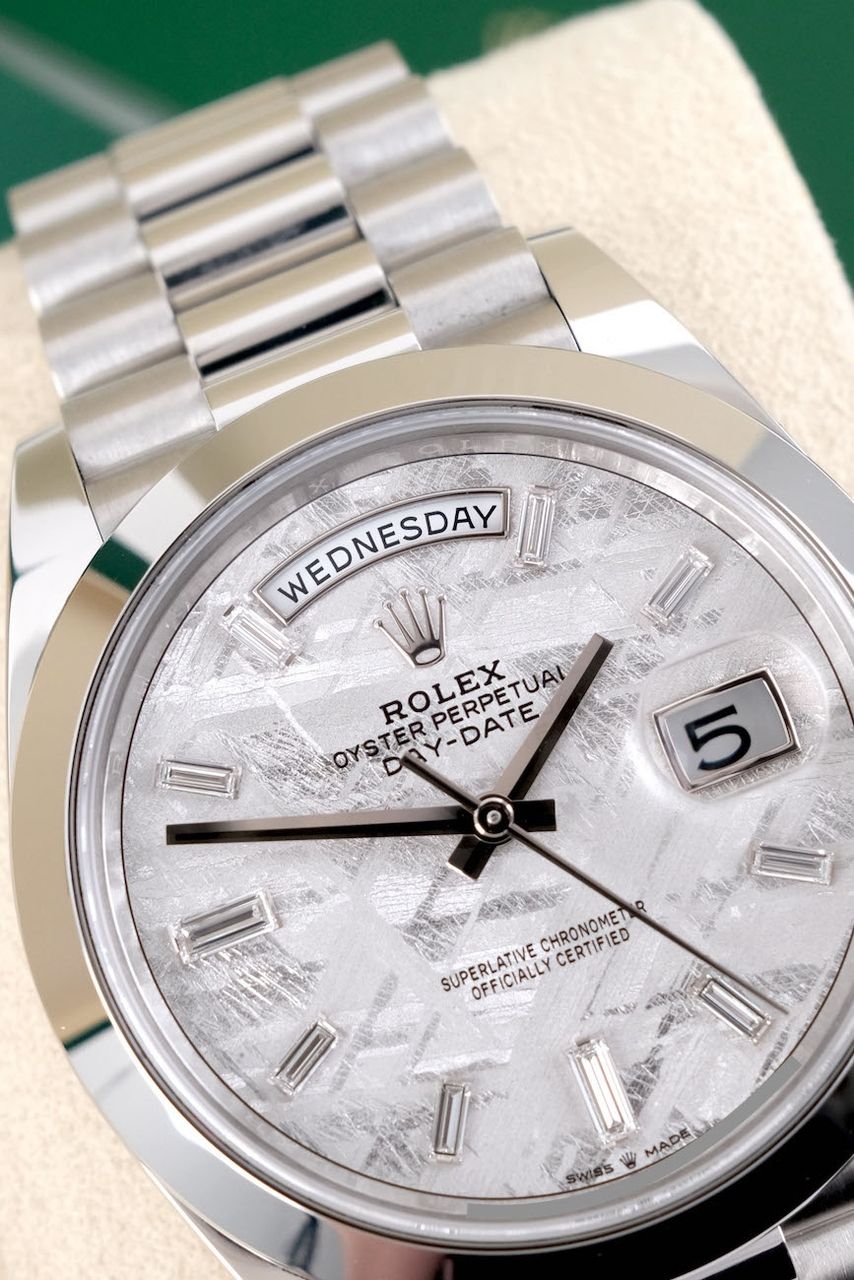 Rolex Day-Date 40 Rolex Day-Date 40 228206 UNWORN Platinum Meteorite Baguette Dial