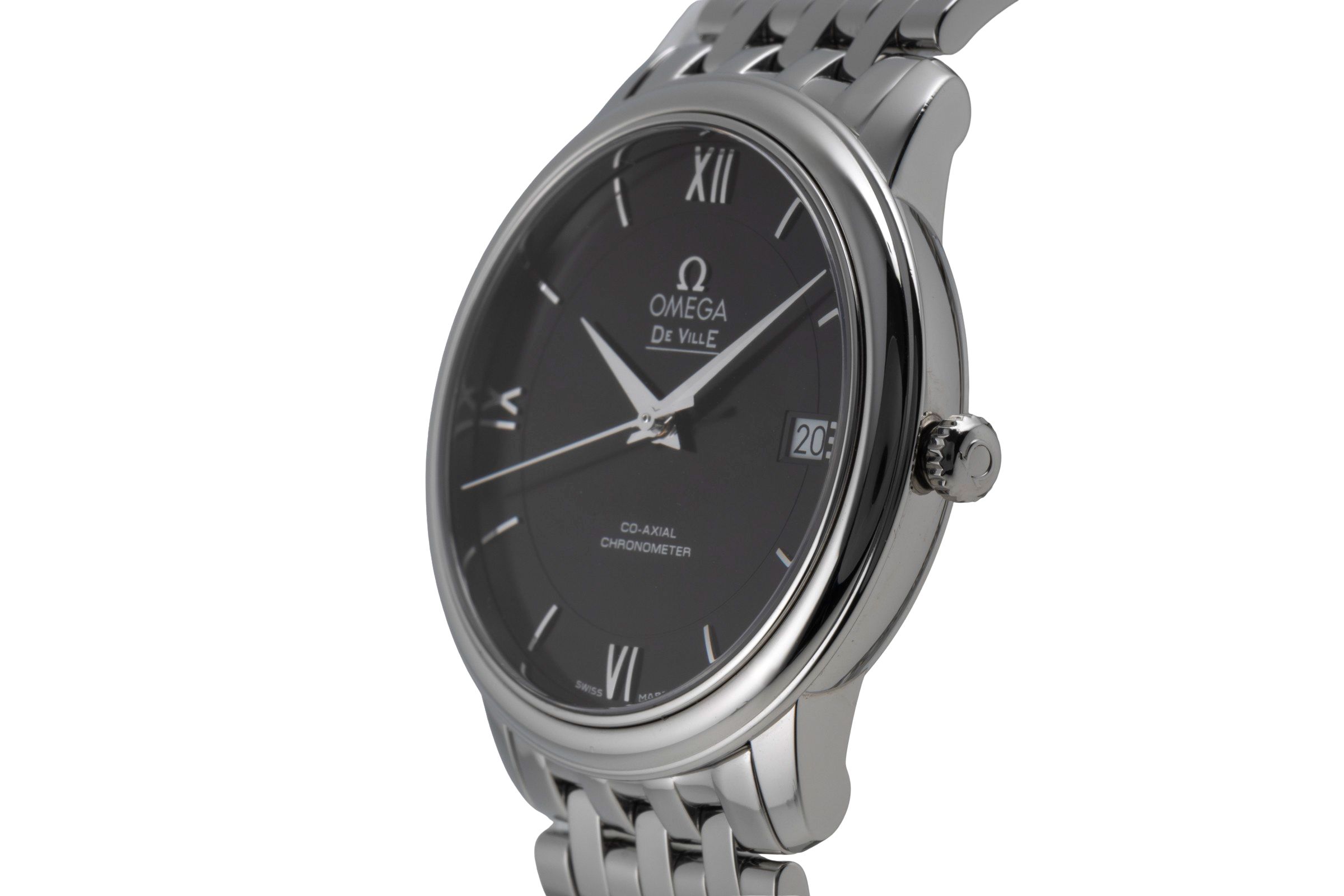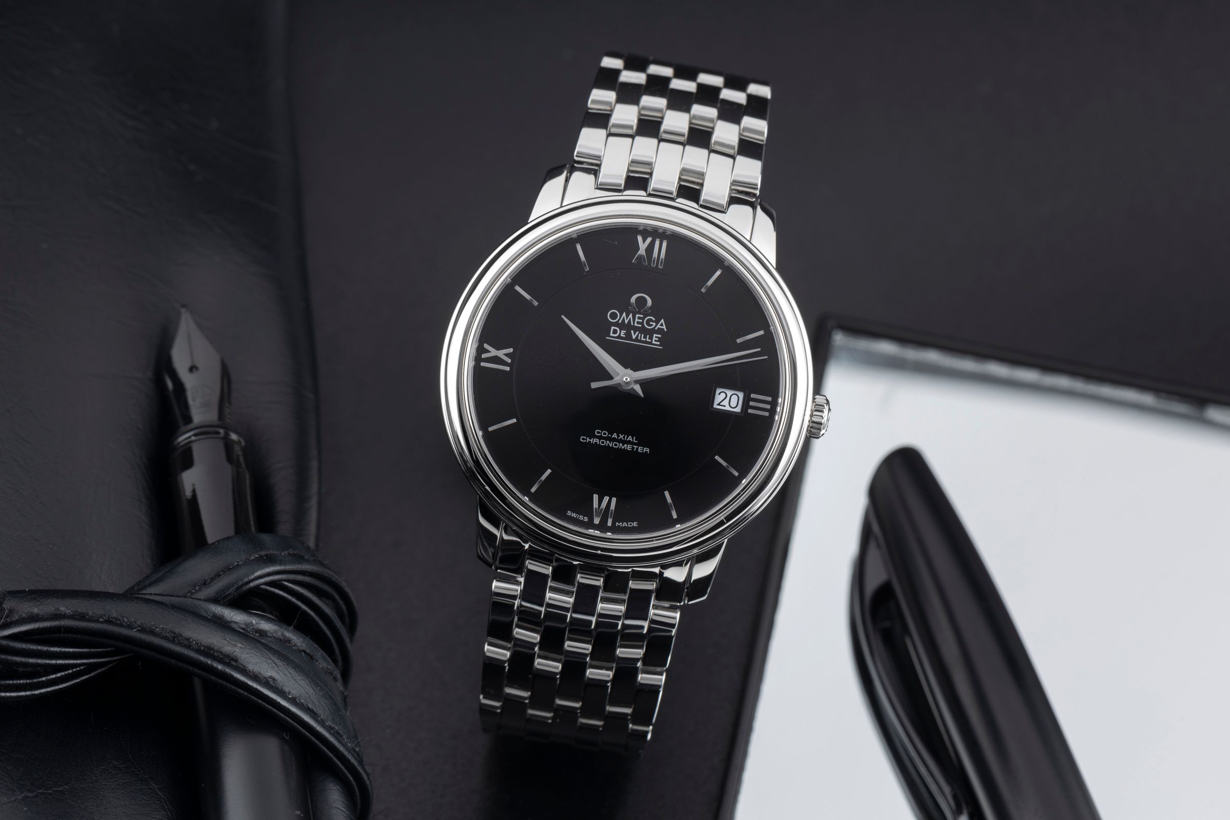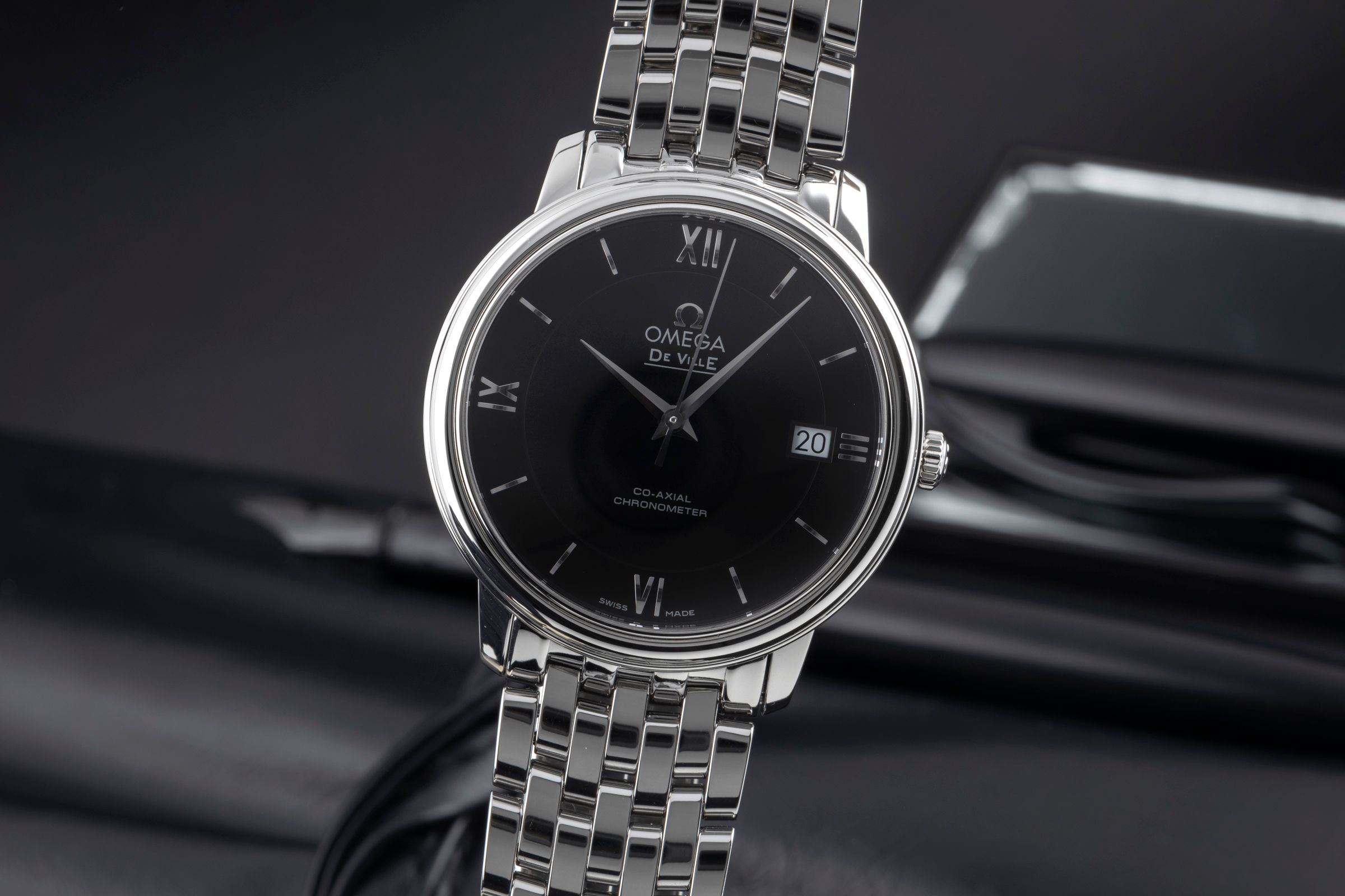 Alternative title: Omega 424.10.37.20.01.001 De Ville Prestige Co-Axial 36.8 Stainless Steel / Black / Bracelet; Omega De Ville Prestige Automatik Stahl Herrenuhr Ref. 424.10.37.20.01.001 B&P [2507095]