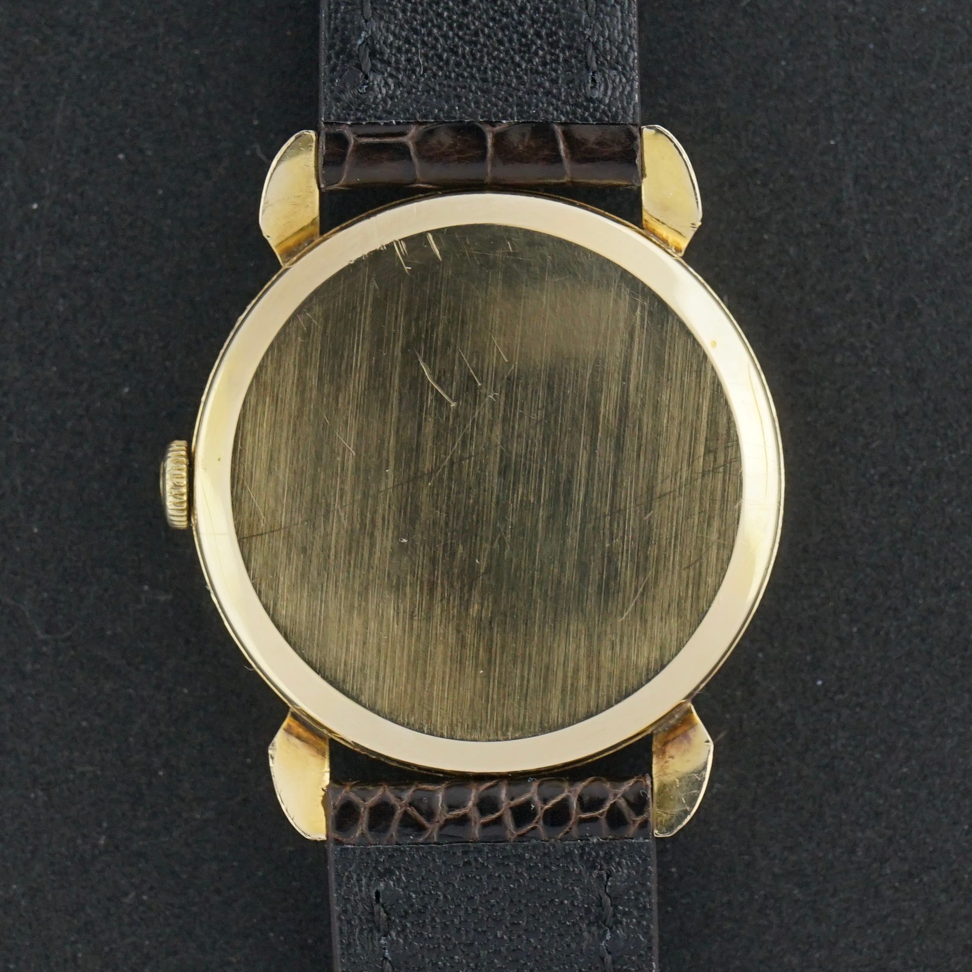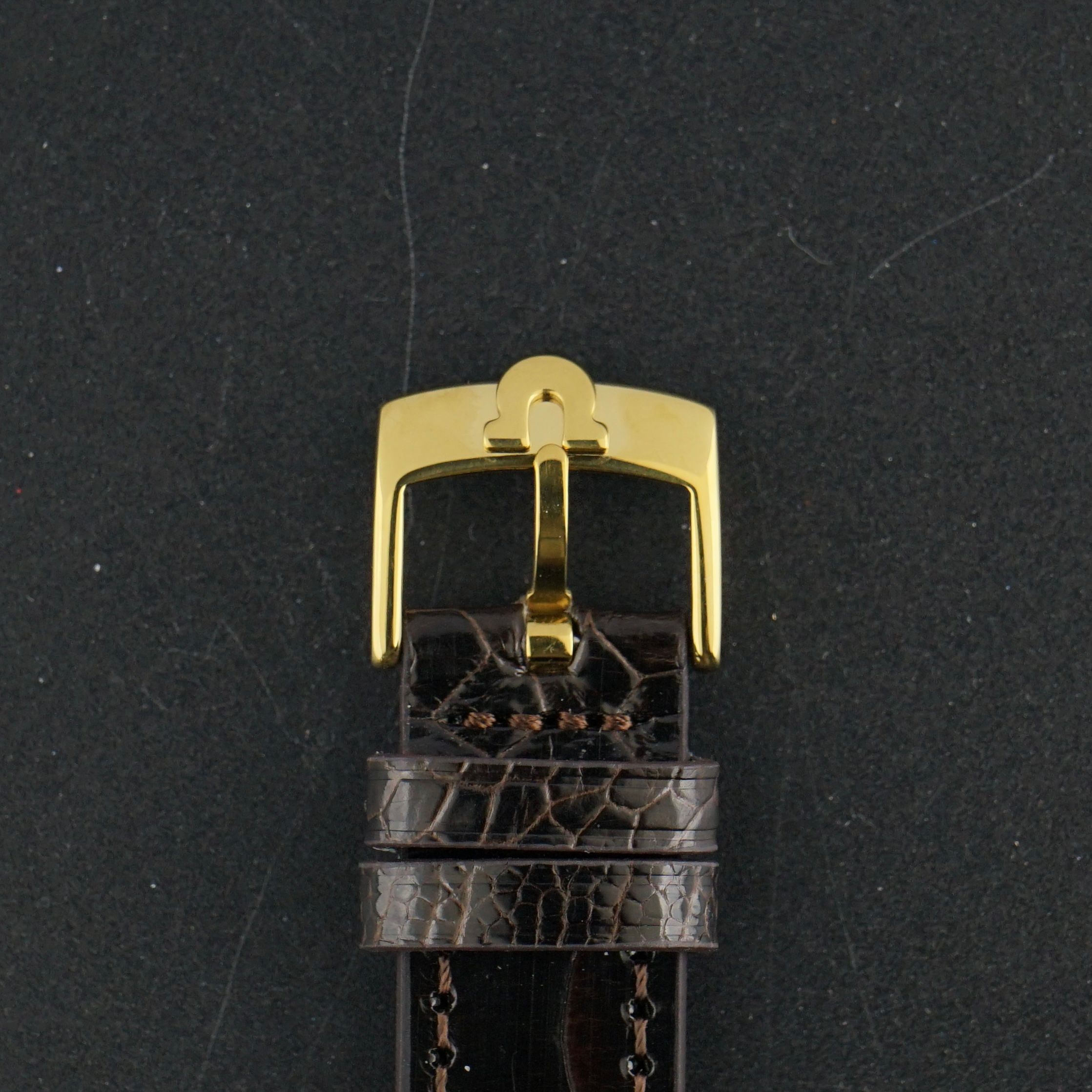 Strap: A grade 3 brown leather strap with a crocodile motif. (Fits a 12 to 20cm wrist)
