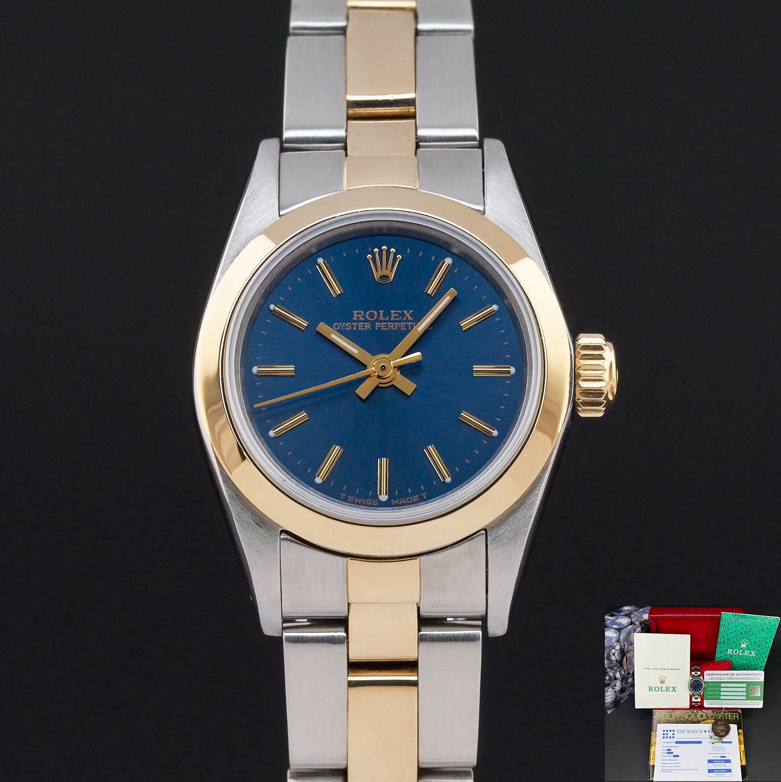 Rolex Oyster Perpetual Lady, 67183, 24mm, 1988, Two-Tone, Blue dial, Fullset, 1y warranty