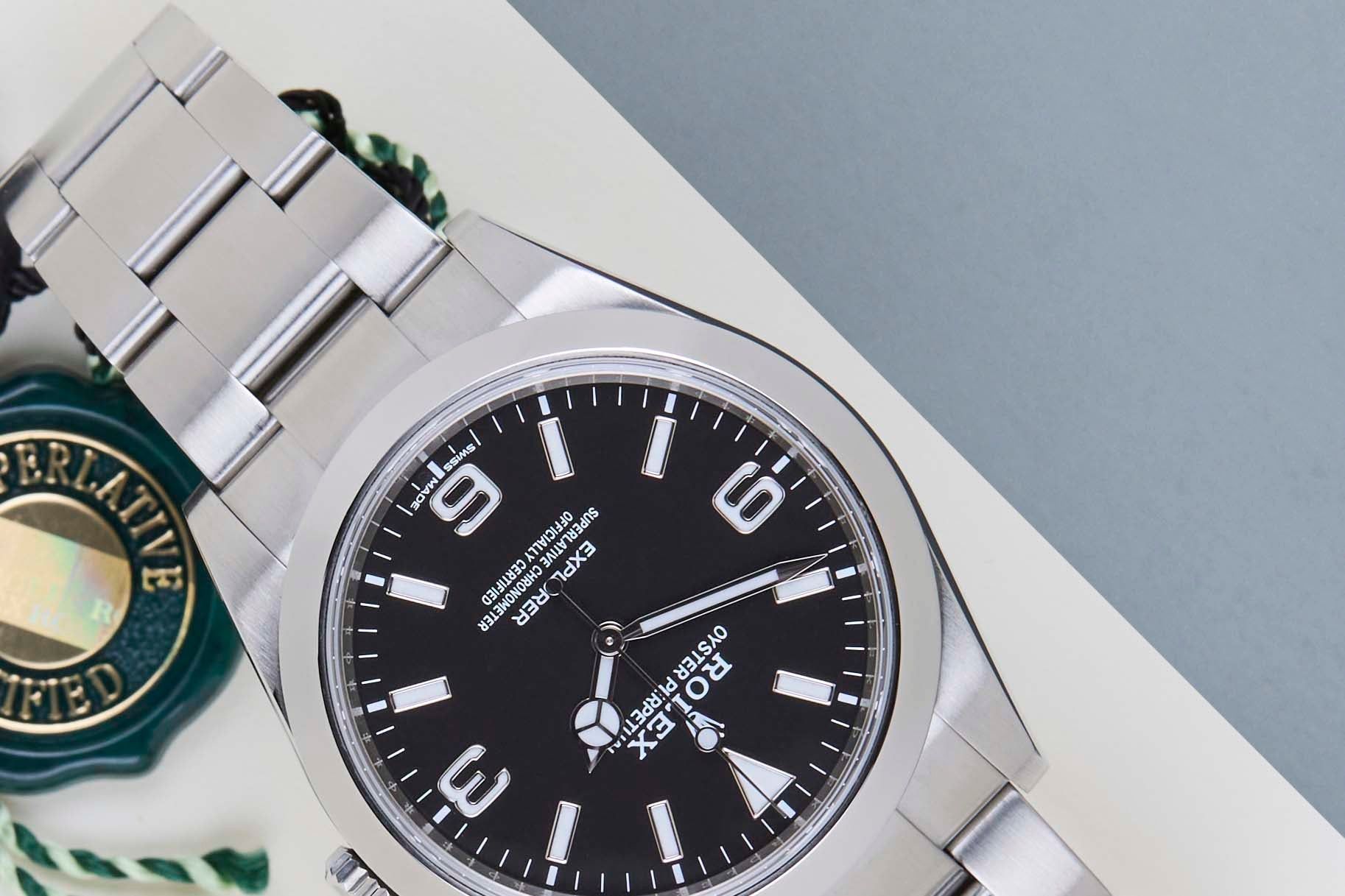 Full Set The Rolex Explorer I 39 reference 214270 was first released in 2010 at Baselworld. This new Explorer featured some major upgrades, including a larger 39mm case and the solid-link 904L stainless steel Oyster bracelet (77200).This Rolex Explorer I 39 'MK II' was sold for the first time in December 2019.This Rolex Explorer 214270 is in Mint Condition and comes with the original Rolex Warranty Card and original box. Furthermore, the watch has been serviced by our watchmaker, and therefore it comes with one year of Steiner warranty.