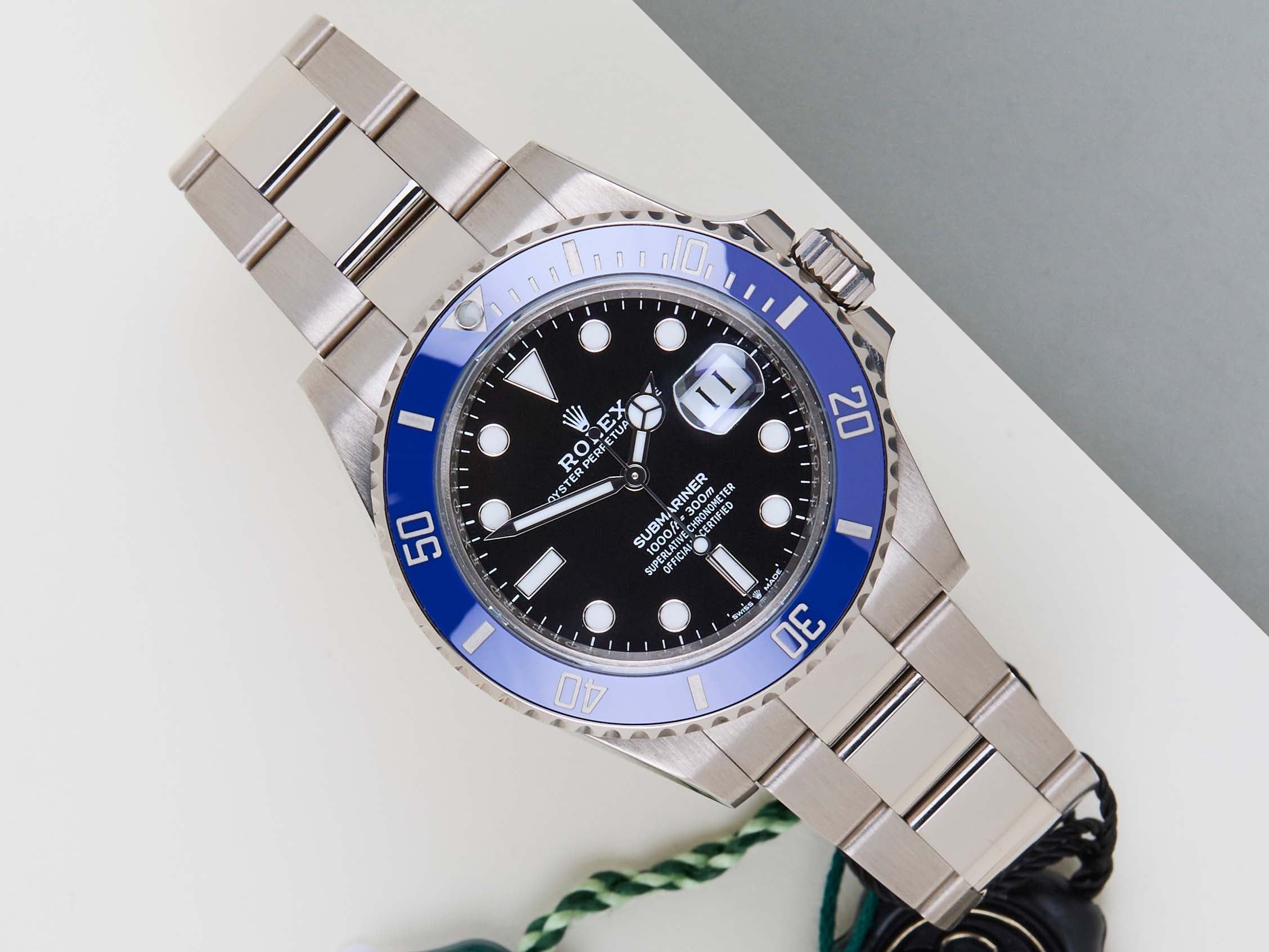 Full Set | International Rolex Warranty Until January 2029 | Including Rolex White TagThe Rolex Submariner was introduced by Rolex in 1953. The Submariner is known for its durability, reliability, and precision, and it has become one of the most iconic and recognizable watch models in the world.This Rolex Submariner Date - White Gold was sold for the first time in January 2024.The watch is fully made out of 18ct. White Gold. This Rolex is equipped with a Chromalight dial which can be recognised by the blue lume.This Rolex Submariner Date is in Mint Condition and comes with the original Rolex Warranty Card and original box. Furthermore, the watch still has International Rolex Warranty until January 2029.