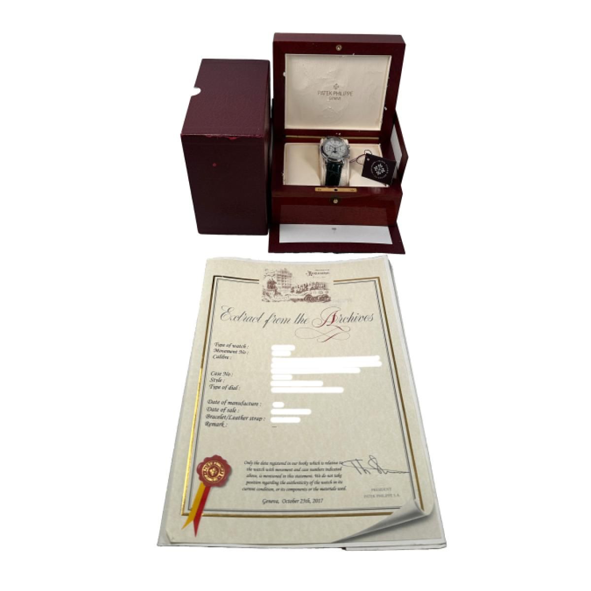Patek Philippe Grand Complications from 1998 with a 36 mm platinum case and folding clasp. This unisex Patek Philippe watch is in very good condition.