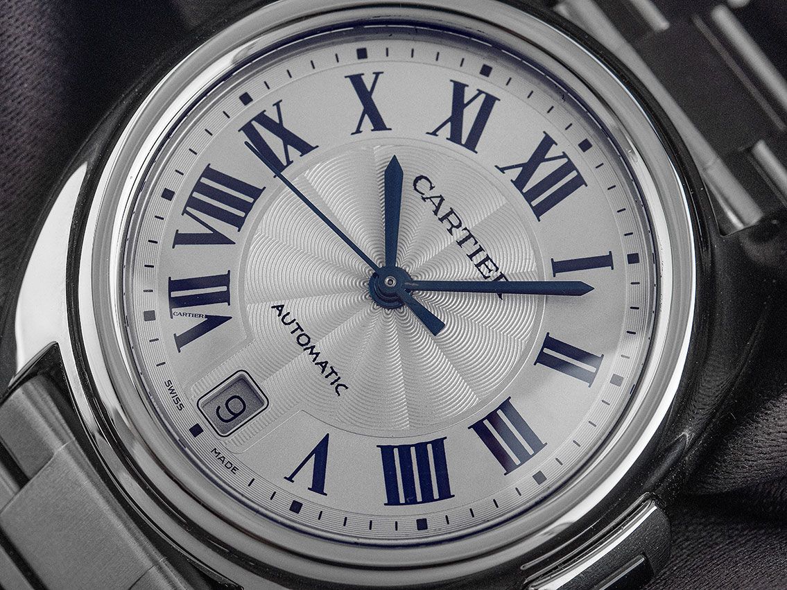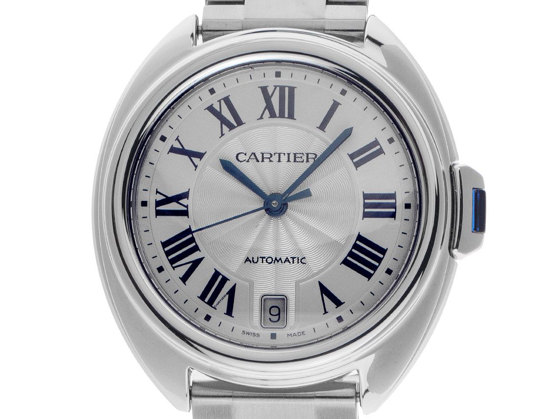 Gehäuse Edelstahl poliert, Gehäusedurchmesser ohne Krone 36mm, Gehäusehöhe 10,3mm. Lünette Edelstahl glatt und poliert. Armband Edelstahl satiniert, verdeckte Doppelfaltschließe Edelstahl, Band von Cartier Ronde Modelle. Zifferblatt silberfarben guillochiert mit blauen römischen Ziffern und gebläuten Zeigern. Uhrwerk Automatik, Kaliber 1847 MC mit 23 Edelsteinen. Anzeige von Stunde, Minute und Sekunde über Zeiger aus der Mitte mit Sekundenstopp zur sekundengenauen Einstellung der Uhrzeit, Datumsanzeige mit Schnellverstellung bei 6 Uhr. Saphirglas kratzfest und gewölbt. Krone eckig mit einem Spinell. Boden Edelstahl 8-fach verschraubt und graviert mit Saphirglas Sichtfenster. Gewicht der Uhr inklusive Armband 86g, Länge des Armbandes inklusive Gehäuse 155mm. Referenznummer: WSCL0006, Gehäusenummer: 73137XXX, Baujahr: 2018, ID: P109353200625H-6800, Artikelnummer: 10000080878. Mit Gangkontrolle und kompletter äußerlicher Aufarbeitung von Juli 2025. Original Cartier Box mit Umkarton und Beschreibung sowie Watchregister Auszug von Juni 2025, The Watch Register Zertifikat / ohne Eintrag (Internationale Datenbank für verlorene oder gestohlene Uhren. Superschnäppchen, Kapitalanlage mit Wertsteigerungspotential. Wie Neu. Lieferzeit sofort.