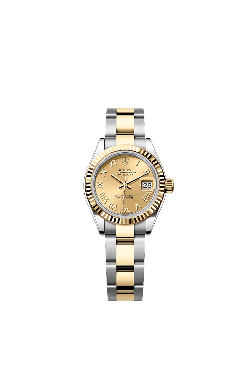 Rolex 279173-0010 Lady-Datejust 28 Rolesor Yellow Fluted / Oyster / Champagne Roman