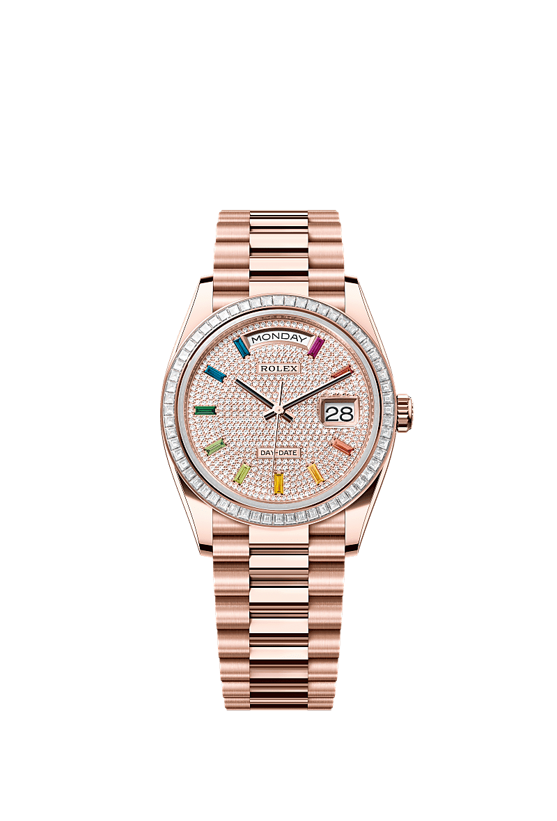 Rolex 128395TBR-0008 - Day-Date 36 Everose Gold - Baguette / Paved - Rainbow / President
