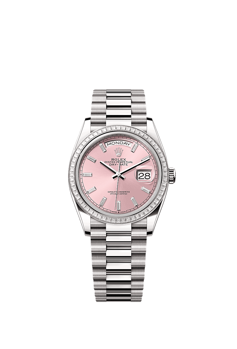 Rolex 128399TBR-0029 - Day-Date 36 White Gold - Baguette / Pink - Baguette / President