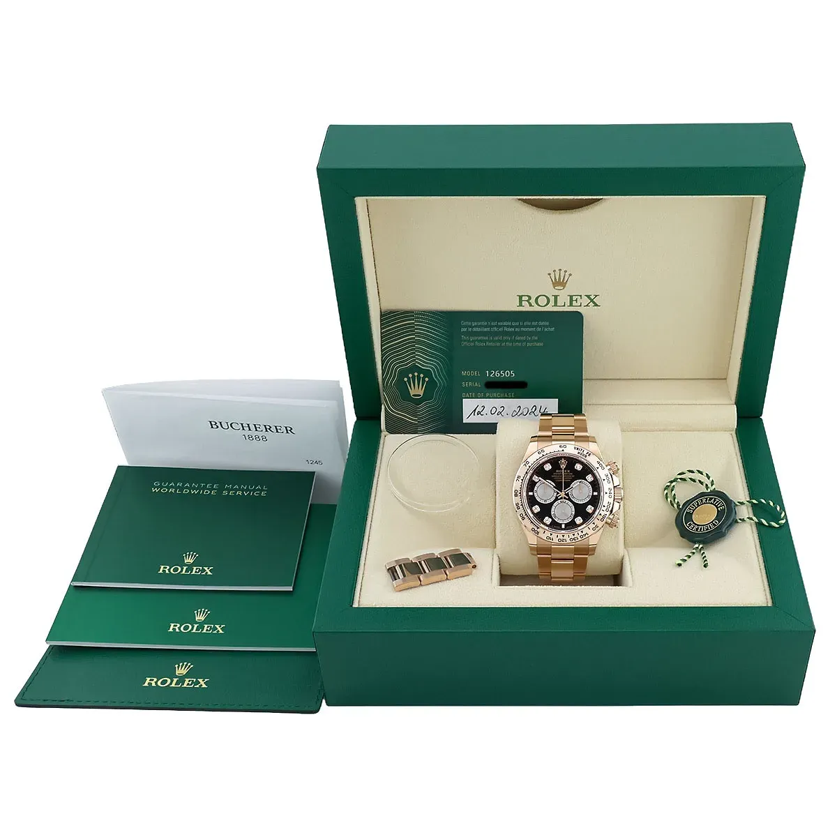ROLEX | Cosmograph Daytona Oyster 40 mm Everose-Gold Schwarz Sundust 8 Diamanten | Ref. 126505 - Full Set - NOS