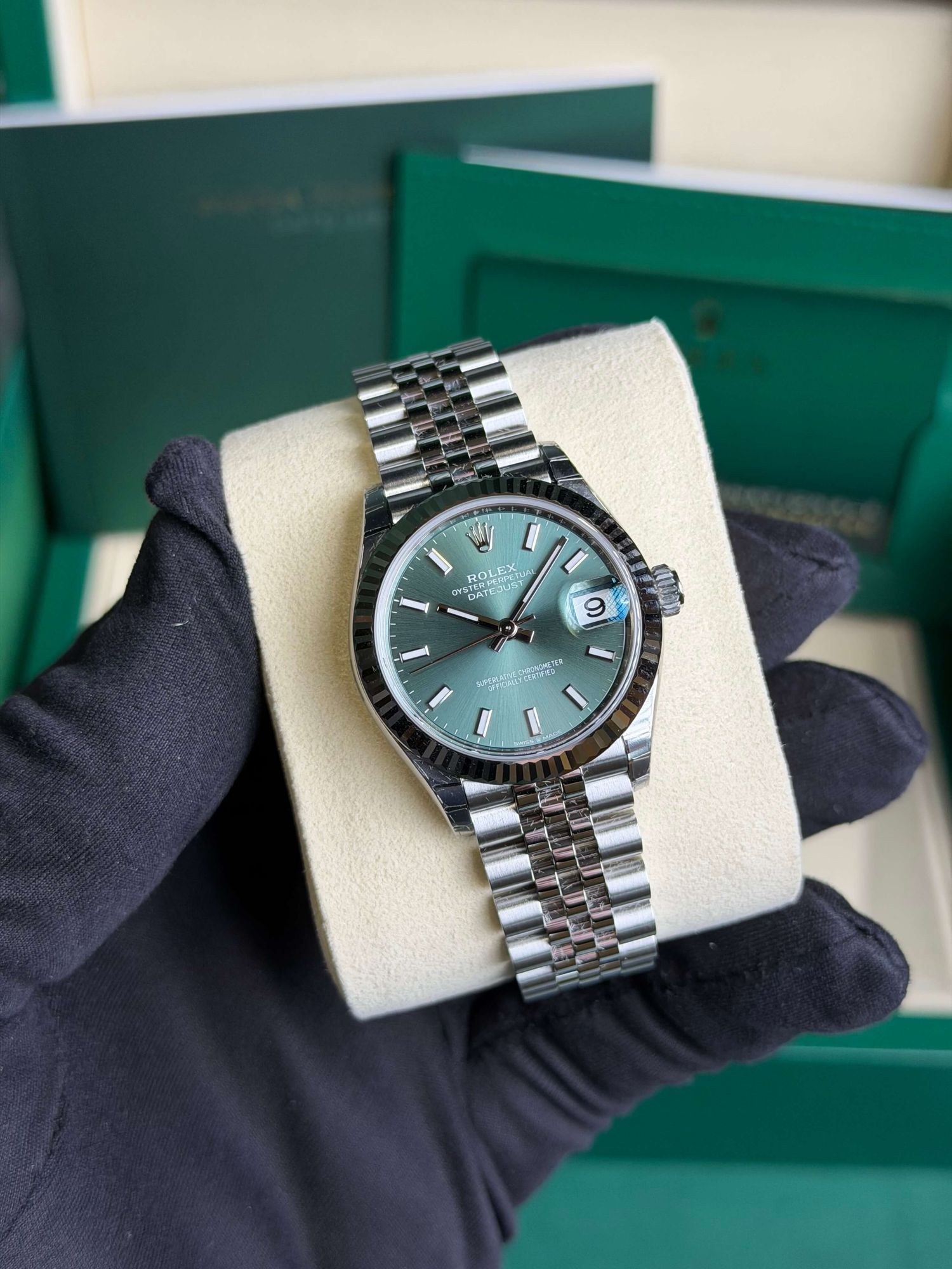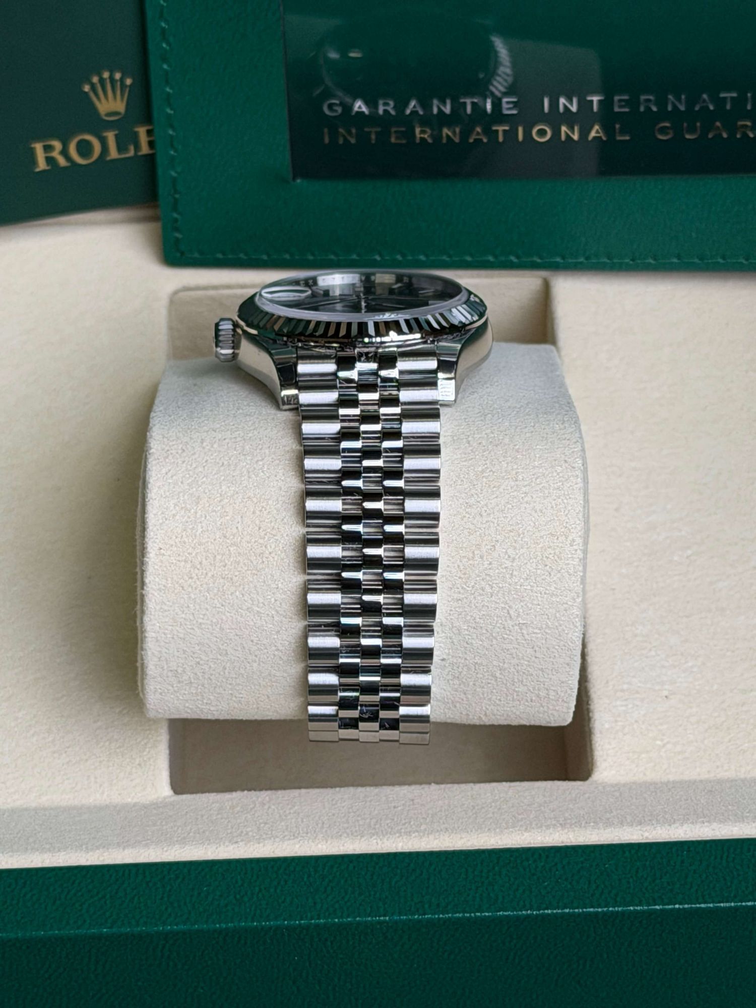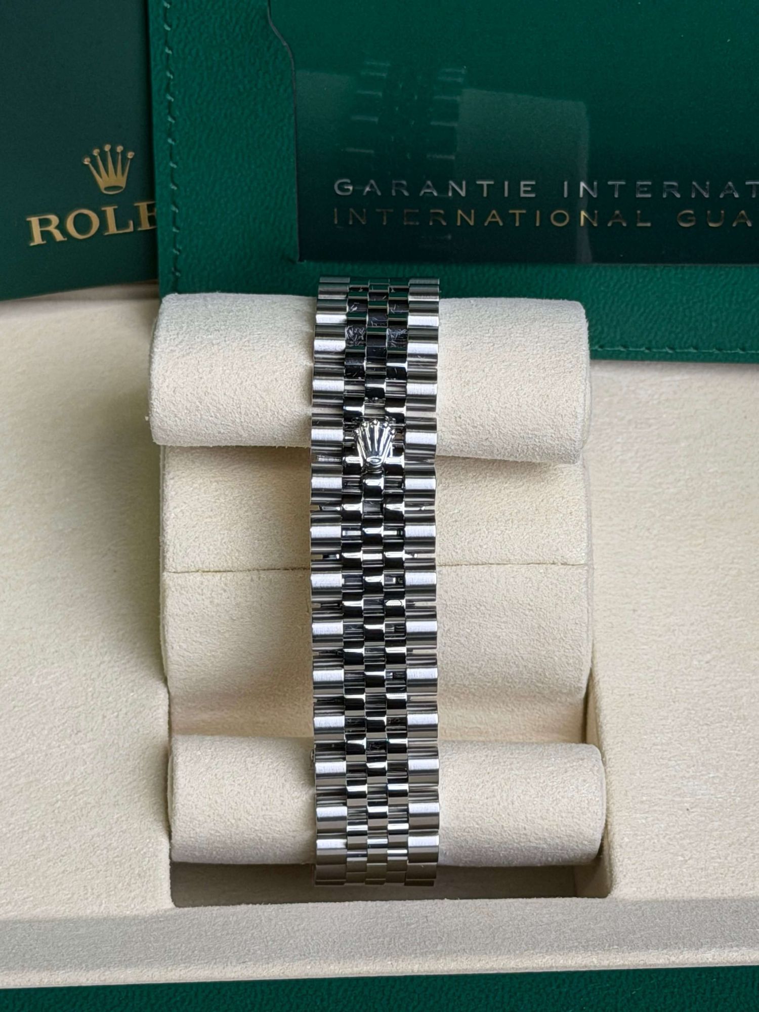 De Rolex Datejust 31 ref. 278274‑0018 in roestvrij staal met groene wijzerplaat is een elegant en veelzijdig horloge dat klassieke Rolex‑kenmerken combineert met een frisse moderne uitstraling. De 31 mm Oystersteel kast wordt omkaderd door een fluted bezel van witgoud en ligt comfortabel om de pols dankzij de verfijnde Jubilee‑bracelet. De levendige groene wijzerplaat met sunburst‑effect vangt het licht prachtig en geeft dit model een subtiel maar karaktervol accent.Aangedreven door het betrouwbare Calibre 2236, biedt dit horloge uitstekende precisie, een gangreserve van circa 55 uur, waterdichtheid tot 100 m en een datumaanduiding met vergrootglas. De 278274‑0018 is een stijlvolle keuze voor wie een verfijnde, tijdloze Datejust wil dragen met een opvallende maar stijlvolle kleur.