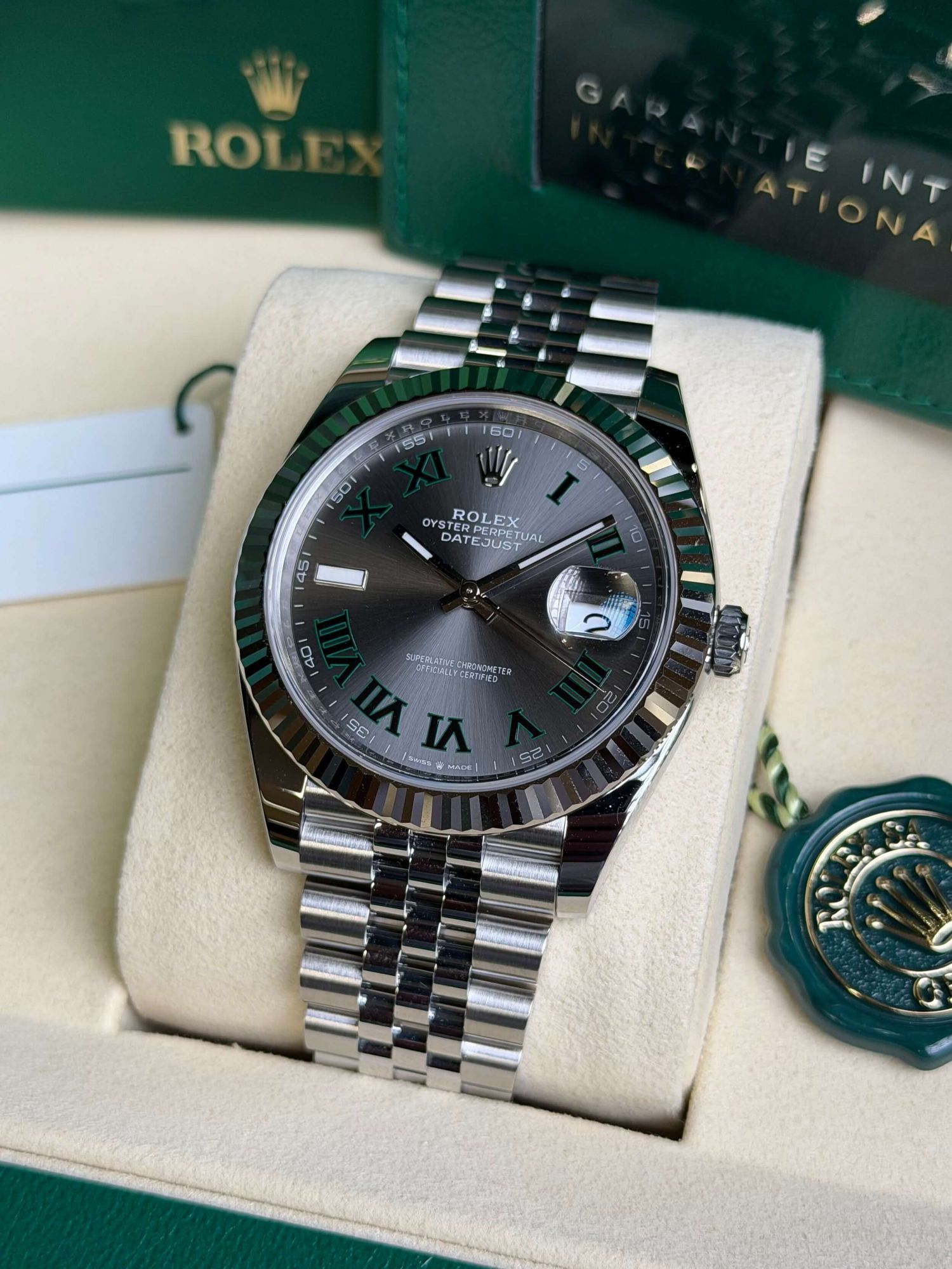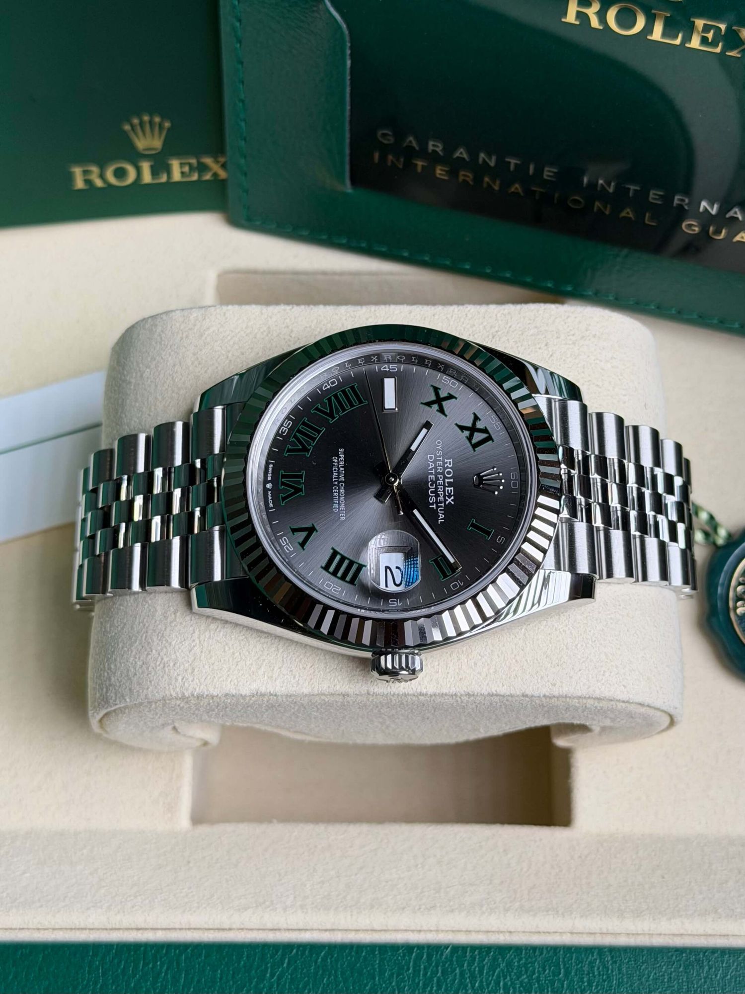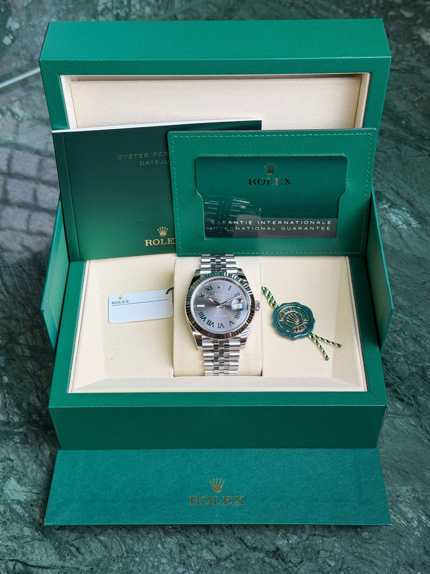 Rolex 126334-0022 (Wimbledon) Datejust 41 Stainless Steel Fluted / Slate - Roman / Jubilee