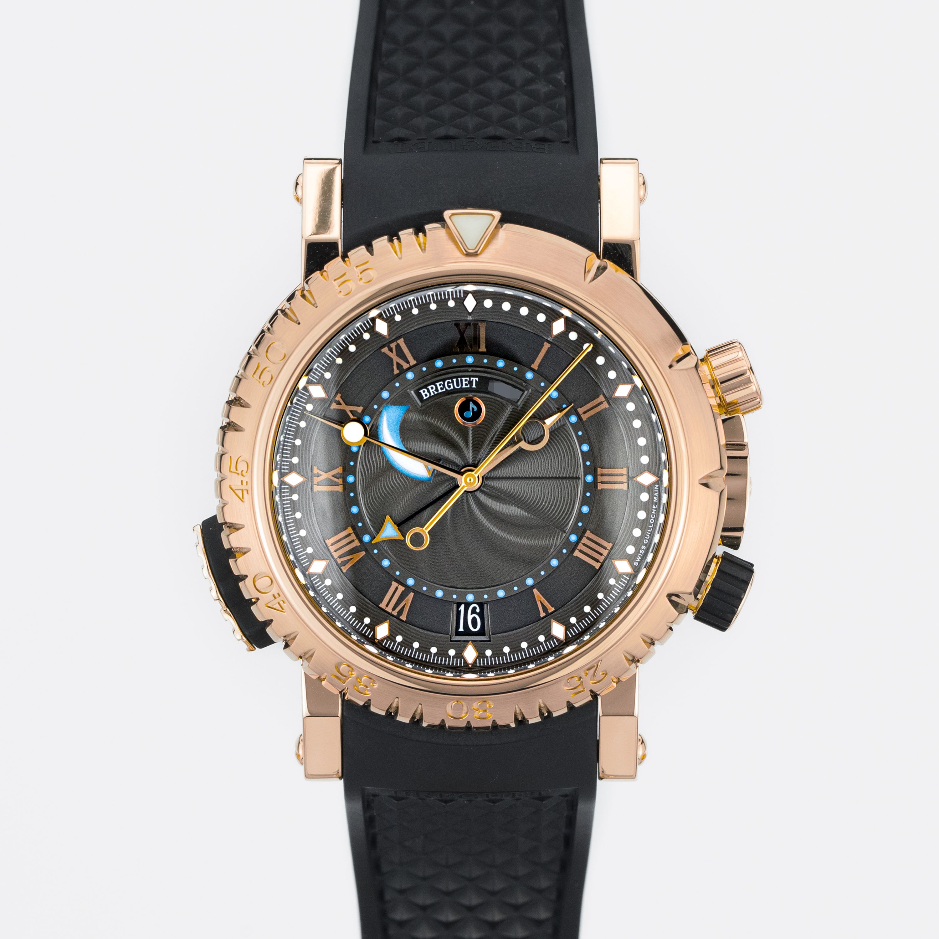 Today, for the first time, we have the pleasure of presenting to your attention a representative of the brand's Marine series – and not just any, but the largest and most expensive representative of the Marine Royale series. The series unites all this heritage and reminds all of us why Breguet is such a great brand. When the watch was first introduced in 2010, it initially polarized the opinions not only of the brand's admirers but of watch enthusiasts in general. The piece presented here is a typical example of this series - it is offered in an exquisite coin-edged case, crafted from 18-carat gold. The dial is distinguished by an intricate guilloché – such a combination of radial brushing on the outer edges of the dial and three-dimensional cubes in the central part cannot be found in any other brand on the market. The old-fashioned aesthetic of the watch is further enhanced by the Roman numerals and blue ornate hands.
