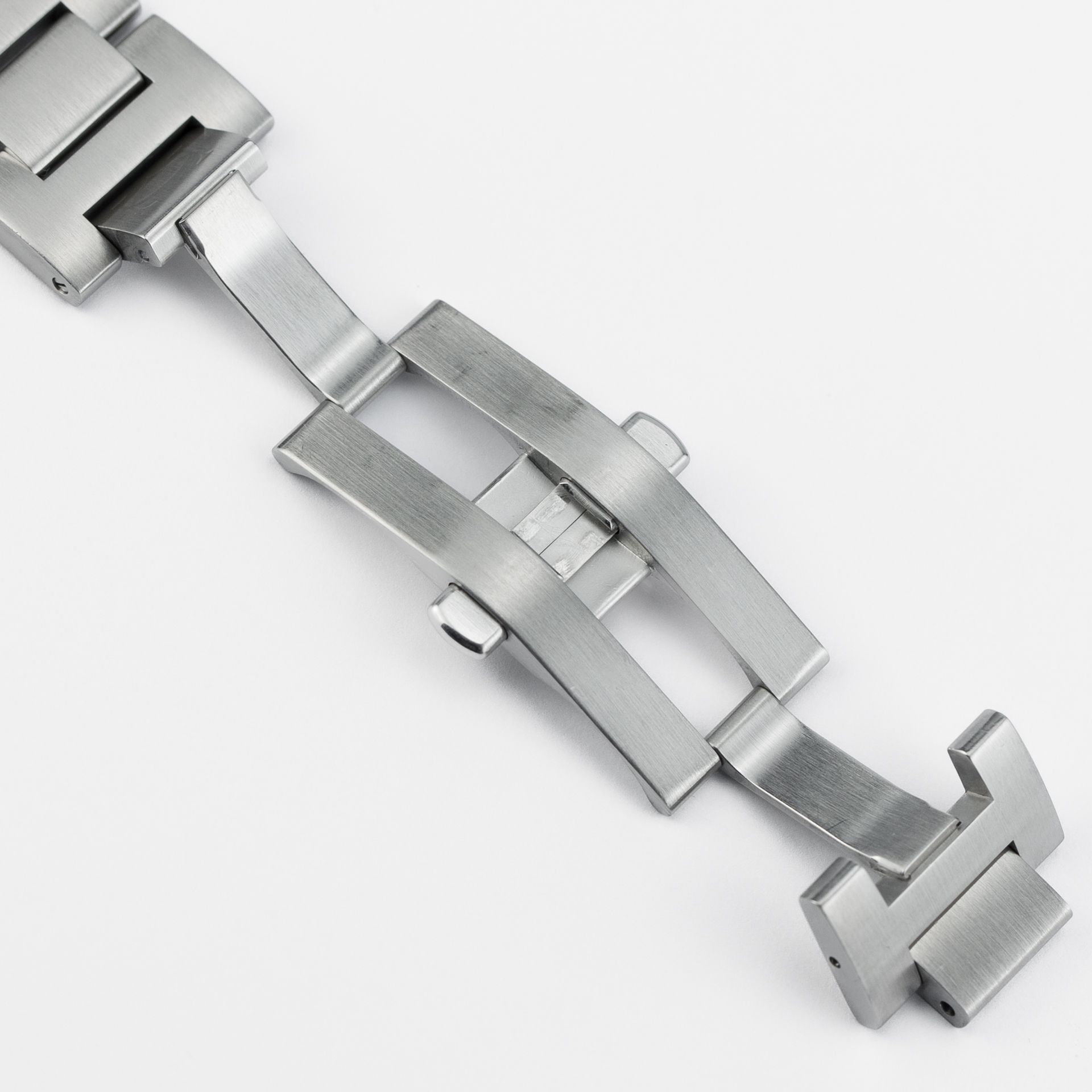 The watch presented here was available until 2020 when it was replaced by the new model (now 41 mm), it comes in a steel case, with a steel bracelet (a version is also available in which the bracelet is “clad” in vulcanized rubber) with a deployant clasp and in a 40 mm size. Today's offering has a black dial (the other option being a silver one), with Arabic numerals and a black sapphire cabochon on its crown.