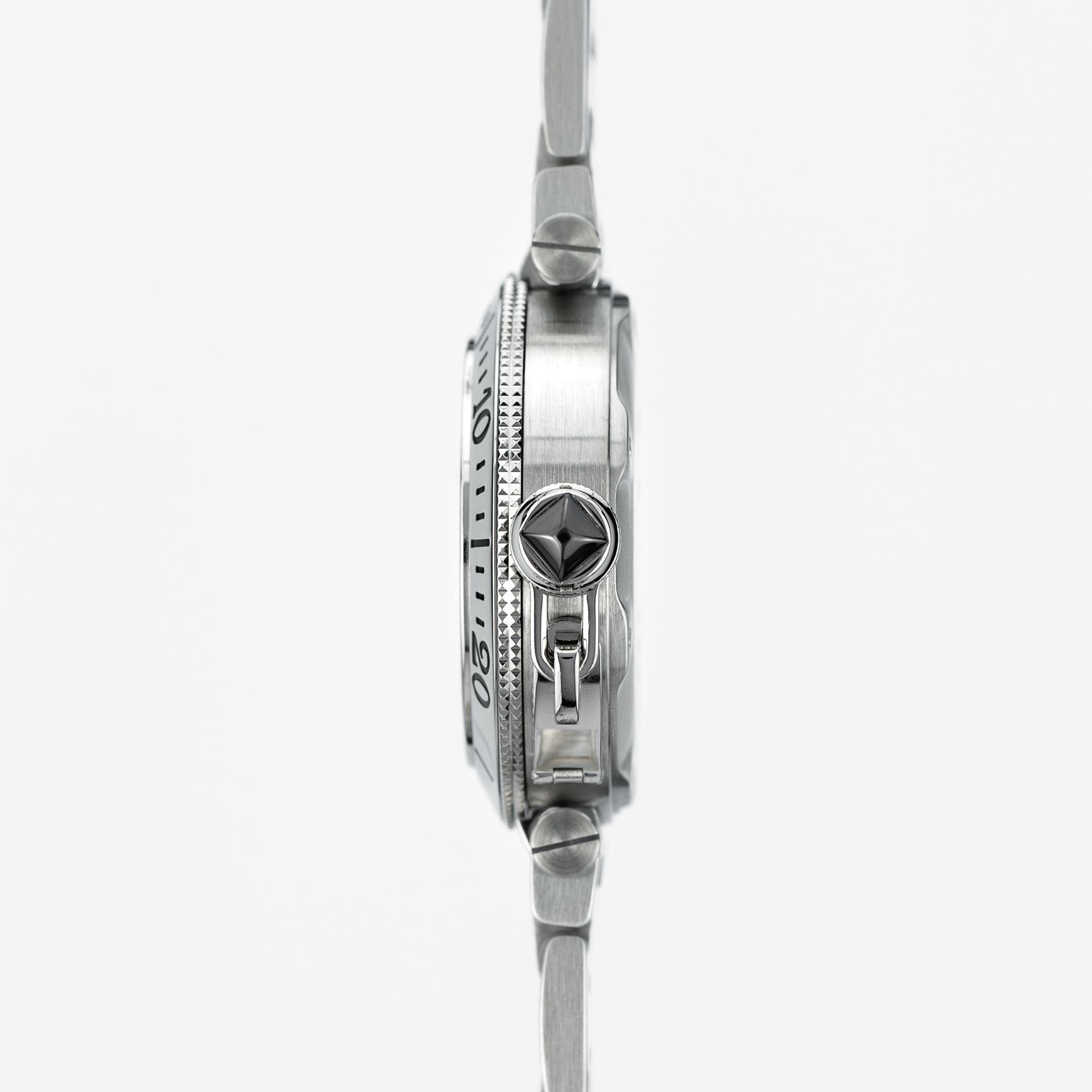 Launched in 2006, it largely differs from the brand's classic design – the dial features Arabic numerals, it lacks an inner scale, the hands are not blued steel, a sapphire cabochon is present on the crown, but it is black.