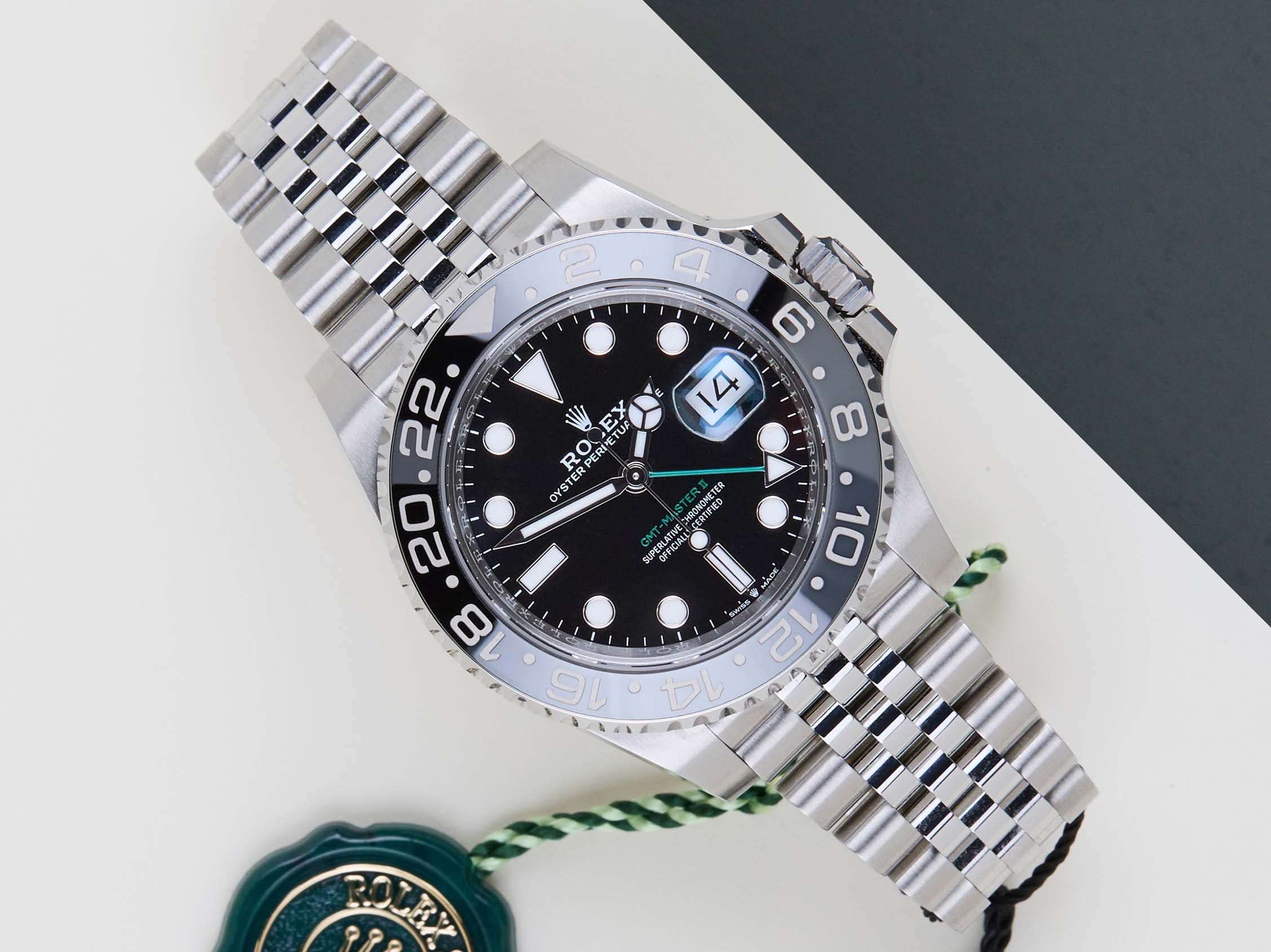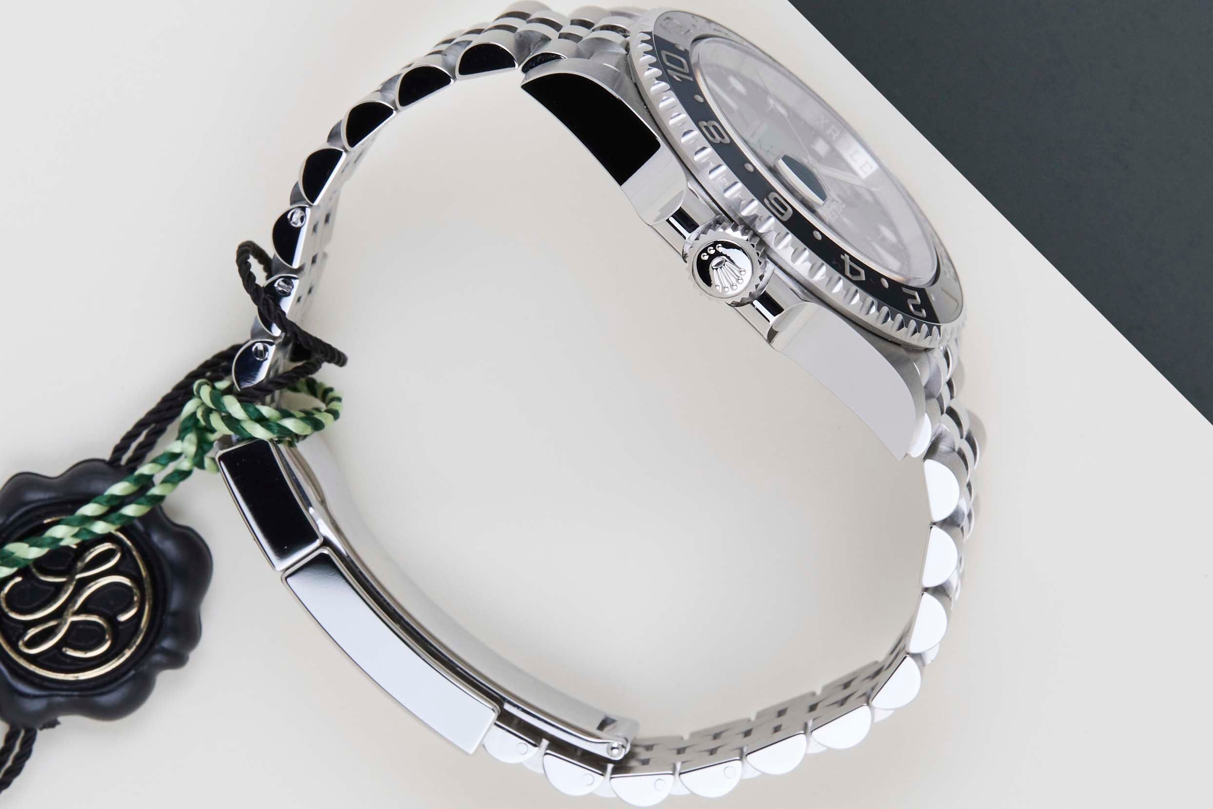 Unpolished Condition | Full Set | International Rolex Warranty Until October 2030The Rolex GMT was originally designed in collaboration with Pan American Airways and issued to their crews on long-haul flights. The dual time zone can track local and home time, which is a useful tool for pilots and those who are travelling a lot across different time zones.The reference 126710 is the second generation of the GMT-Master II with a Ceramic Bezel. The material to make this bezel is called 'Cerachrom', which was developed completely in-house by Rolex to be highly scratch-resistant.This GMT is equipped with the Grey and Black Bezel, which can be derived from the reference 126710GRNR, Lunette Gris Noir.This GMT-Master is made of stainless steel and is fitted with a Jubilee bracelet, which is equipped with the Easylink. This extension, allows the wearer to either extend or shorten the bracelet by 5 millimetres, improving the wearability and usability of the watch.This Stunning Rolex GMT-Master II is in Mint, Unpolished condition and comes with the original Rolex Warranty Card and Box. Furthermore, the watch still has International Rolex Warranty until October 2030.