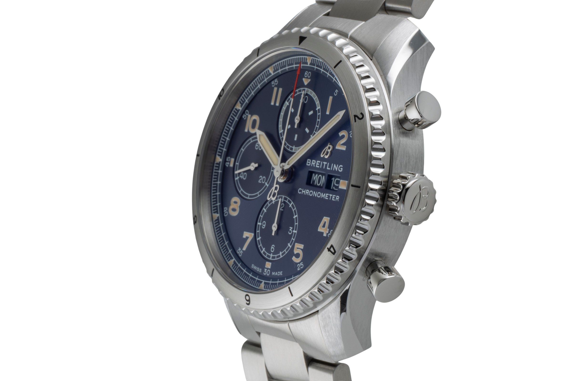 Functions: Chronograph, Date, Pilot's watch, Weekday display