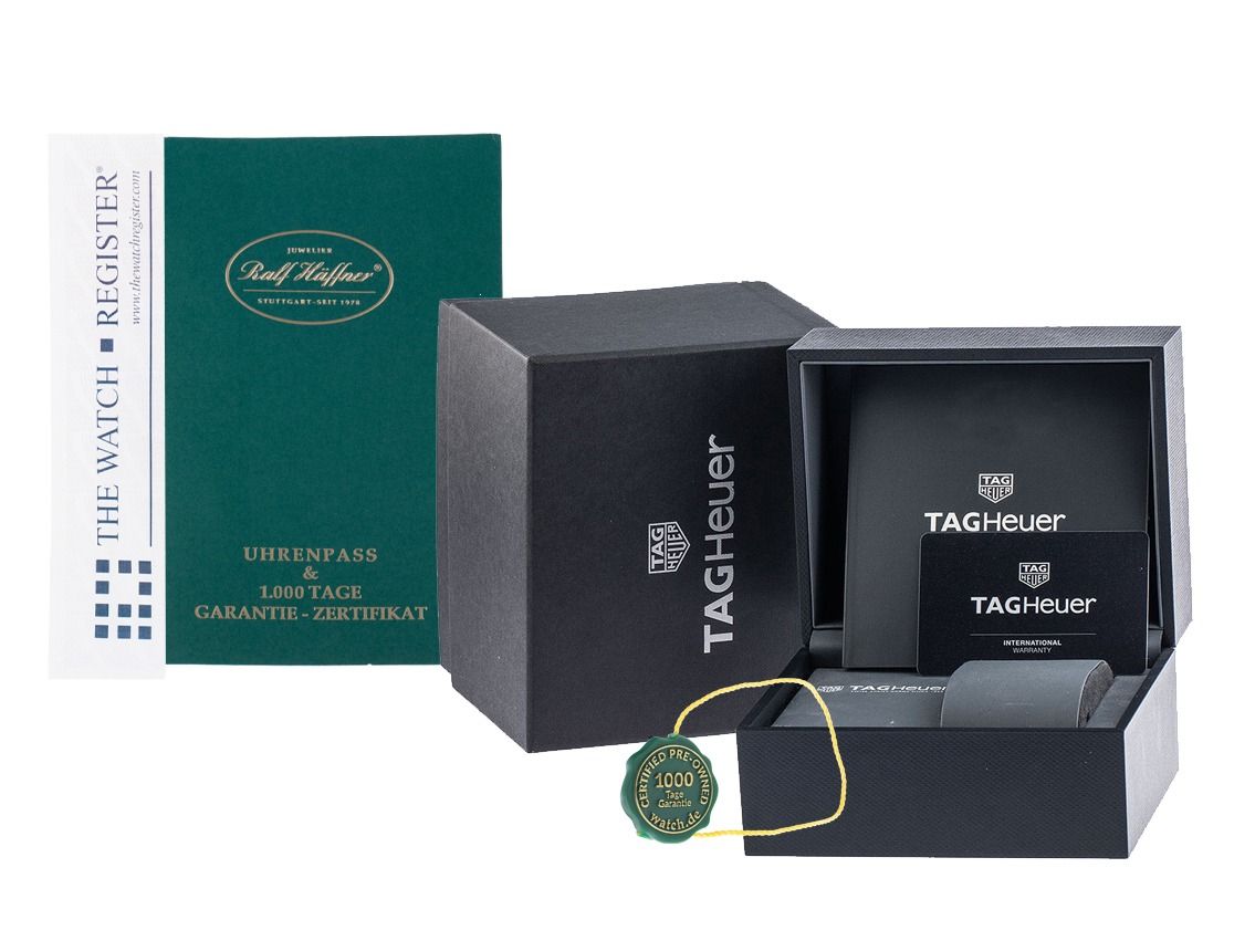 Gehäuse Edelstahl poliert und satiniert, Gehäusedurchmesser ohne Krone 43mm, Gehäusehöhe 11,9mm. Lünette Edelstahl poliert und satiniert mit grauem Keramik Inlay, 60-Minuten Skala, einseitig drehbar. Armband Edelstahl satiniert, Sicherheitsfaltschließe Edelstahl mit Hersteller-Logo. Zifferblatt grau mit Sonnenschliff, aufgesetzten Edelstahl Leuchtindexen und Edelstahl Leuchtzeigern. Uhrwerk Automatik, Kaliber Tag Heuer Calibre 5. Anzeige von Stunde, Minute und Sekunde über Zeiger aus der Mitte mit Sekundenstopp zur sekundengenauen Einstellung der Uhrzeit, Datumsanzeige mit Schnellverstellung bei 3 Uhr. Saphirglas kratzfest. Krone verschraubbar mit Flankenschutz und Hersteller-Logo. Boden Edelstahl verschraubt und graviert mit Tag Heuer Relief. Gewicht der Uhr inklusive Armband 160g, Länge des Armbandes inklusive Gehäuse 170mm. Referenznummer: WAZ2011.BA0842, Gehäusenummer: WZB2XXX, ID: P256624000226H-2950, Artikelnummer: 10000084891. Mit Gangkontrolle und kompletter äußerlicher Aufarbeitung von Februar 2026. Original Tag Heuer Box mit Umkarton und Garantie Papiere von Oktober 2020 sowie Beschreibung und Watchregister Auszug von Februar 2026, The Watch Register Zertifikat / ohne Eintrag (Internationale Datenbank für verlorene oder gestohlene Uhren), Full Set. Wie Neu. Lieferzeit sofort.