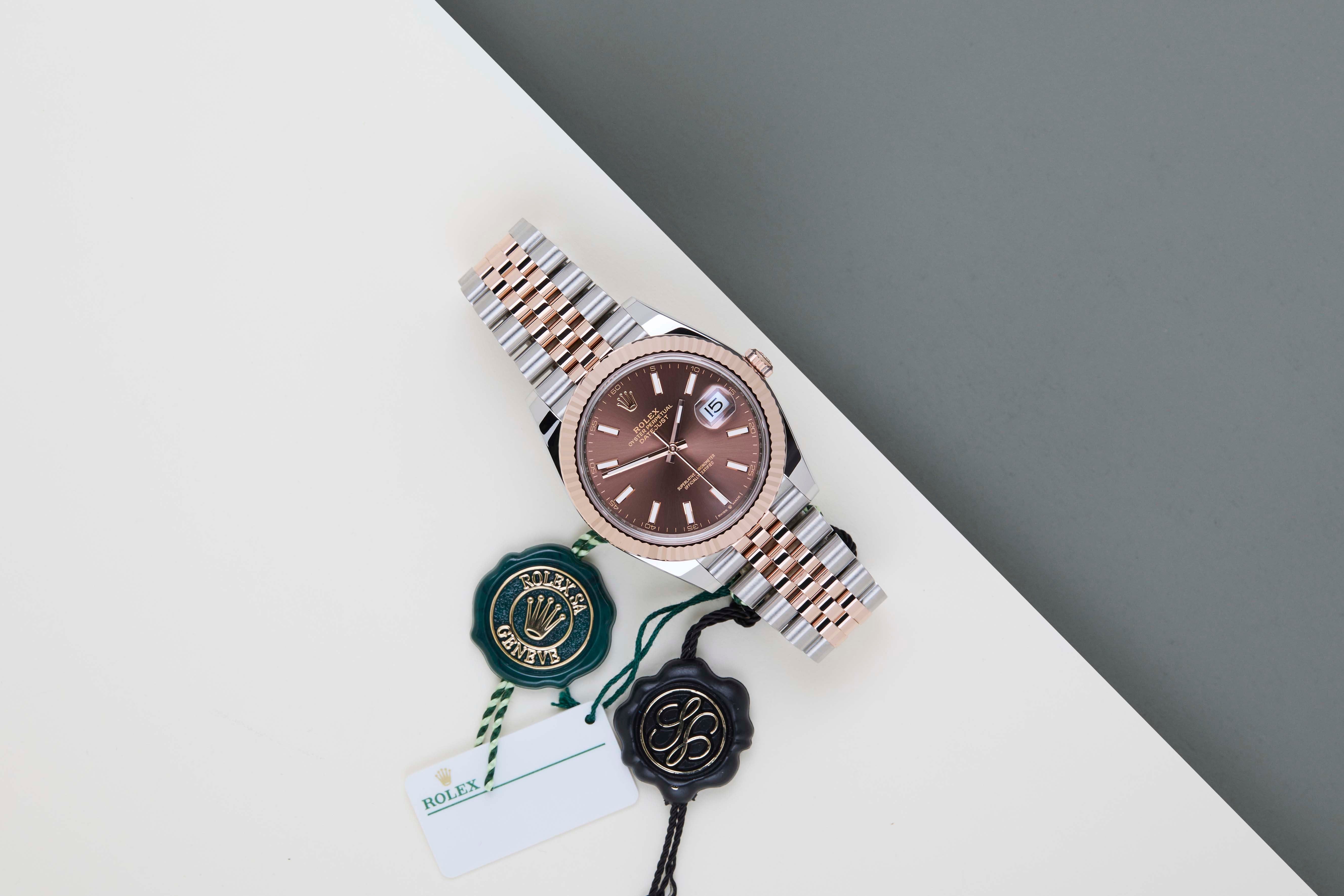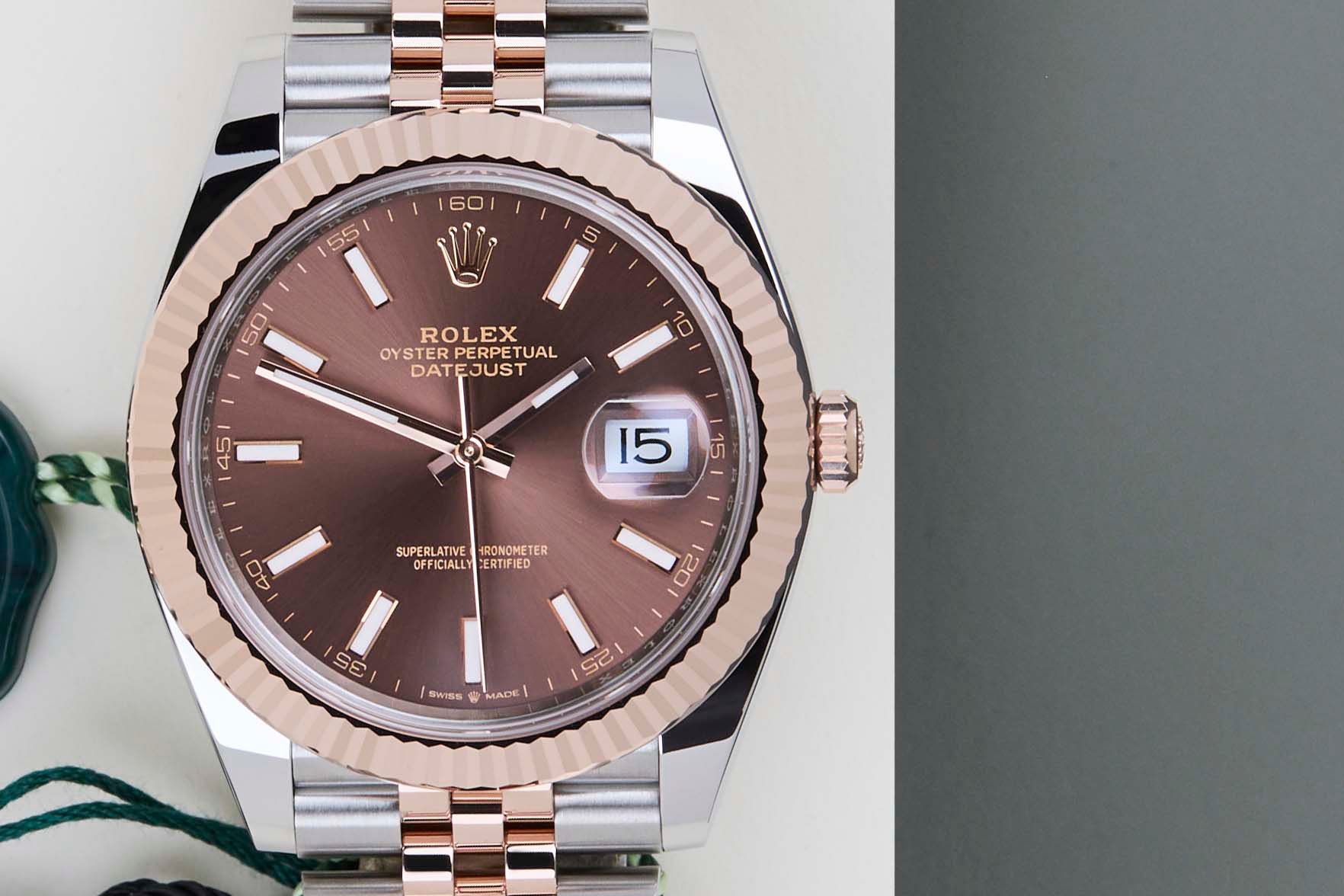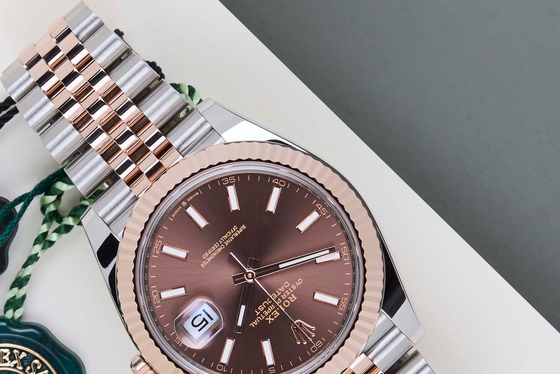 New & Unworn | Full Set | International Rolex Warranty until November 2030 | Including Rolex White Tag | Including Original AD InvoiceRolex introduced the original Datejust in 1945 to celebrate the company's 40th anniversary. Due to the various case sizes and materials, the Datejust has been ingrained in Rolex's history and remains incredibly popular for 75 years.This Rolex Datejust 41 'Chocolate Dial - Jubilee' was sold for the first time in November 2025.This Datejust is made of a combination of 18k Rose Gold and stainless steel and is fitted with a Jubilee bracelet, which is equipped with the Easylink. This extension, allows the wearer to either extend or shorten the bracelet by 5 millimeters, improving the wearability and usability of the watch.This Rolex Datejust 41 is in Unworn Condition and comes with the original Rolex Warranty Card and box. Furthermore, the watch still has Worldwide Rolex Warranty until November 2030.