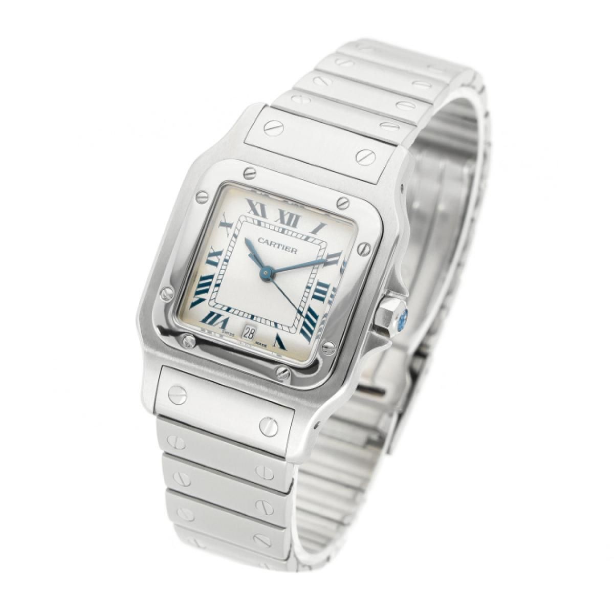 Cartier Santos from 1993 with a 29 x 41 mm stainless steel case and folding clasp. This unisex Cartier watch is in very good condition.