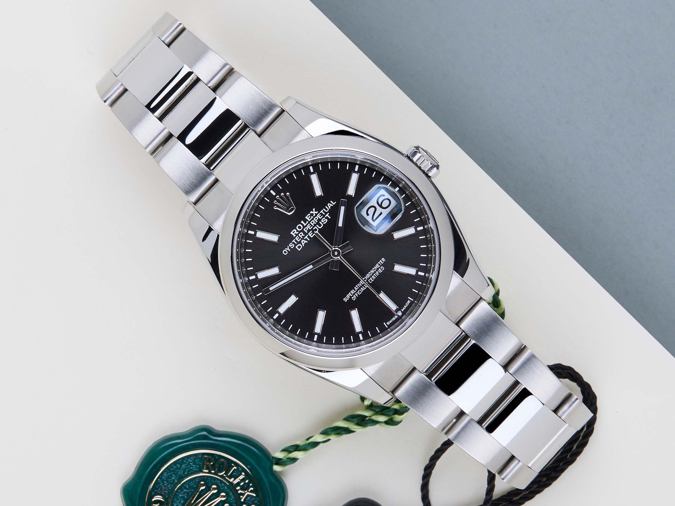 Full Set | International Rolex Warranty Until March 2027 Rolex introduced the original Datejust in 1945 to celebrate the company's 40th anniversary. Due to the various case sizes and materials, the Datejust has been ingrained in Rolex's history and remains incredibly popular for 75 years.This Rolex Datejust 36 'Black Dial - Oyster' was sold for the first time in March 2022.This Rolex Datejust 36 is in Mint condition and comes with the original Rolex Warranty Card and Box. Furthermore, the watch still has International Rolex Warranty until March 2027.