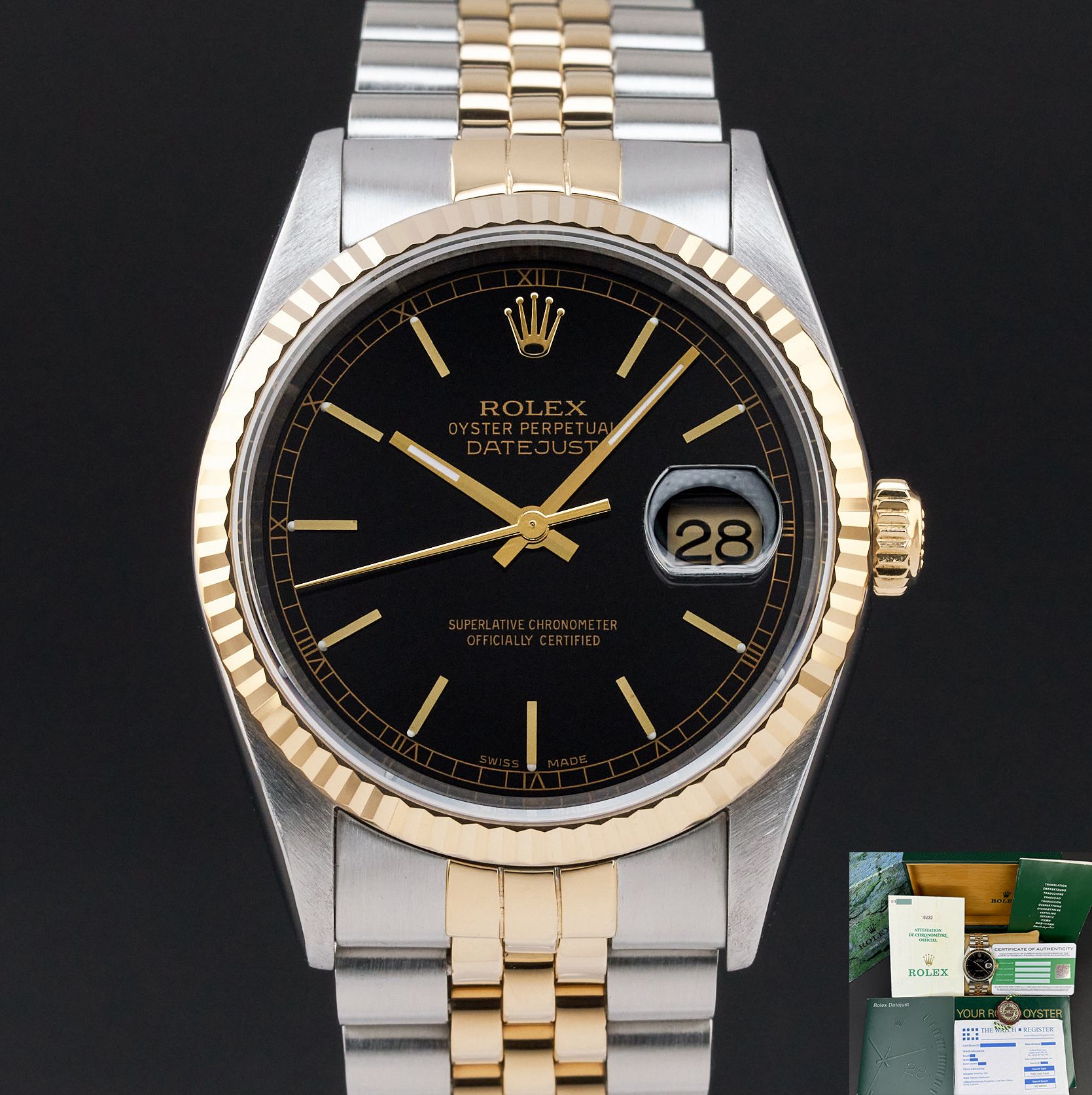 Rolex Datejust 36 Rolex Datejust, 16233, 36mm, 2000, Two-Tone, Black dial, Fullset, 1y warranty