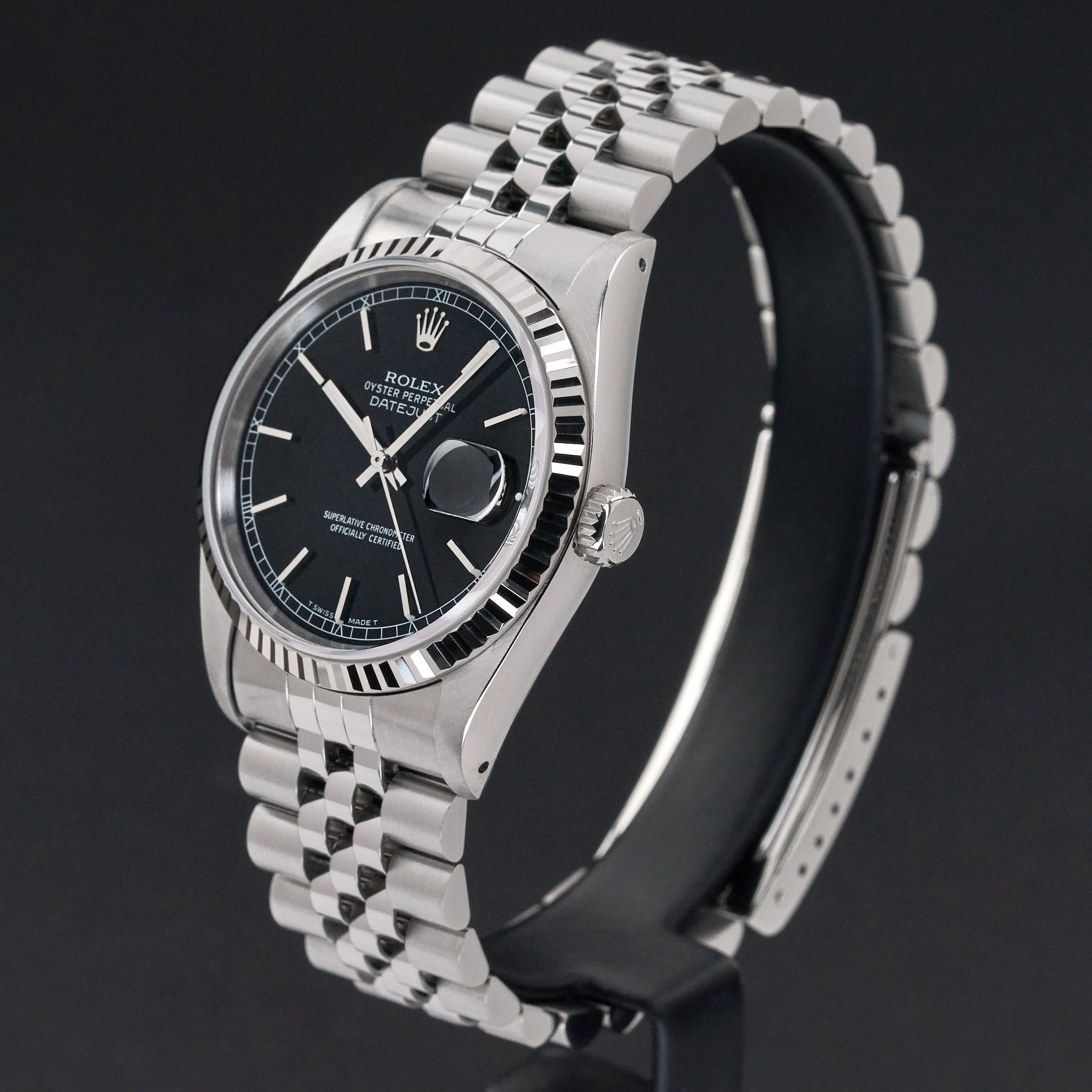 This Rolex Datejust 16234 features a Black dial and is crafted from stainless steel, with a production year of 1991.