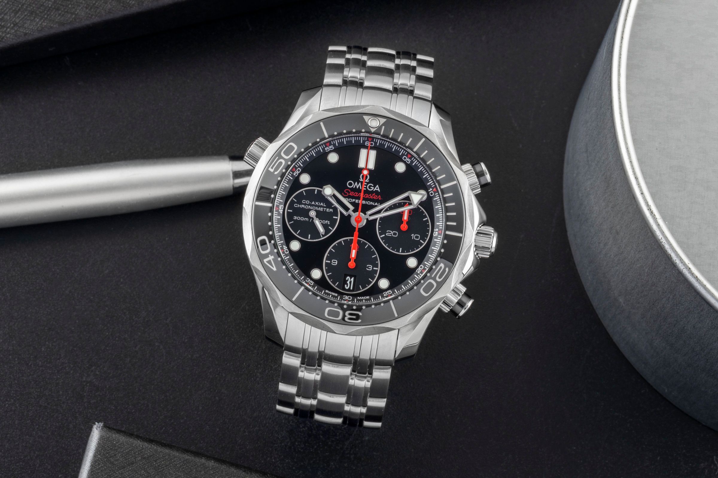 Alternative title: Omega 212.30.42.50.01.001 Seamaster Diver 300M Co-Axial 41.5 Chronograph Stainless Steel / Black / Bracelet; Omega Seamaster Chronograph Stahl Automatik Ref. 212.30.42.50.01.001 B&P [2600827]