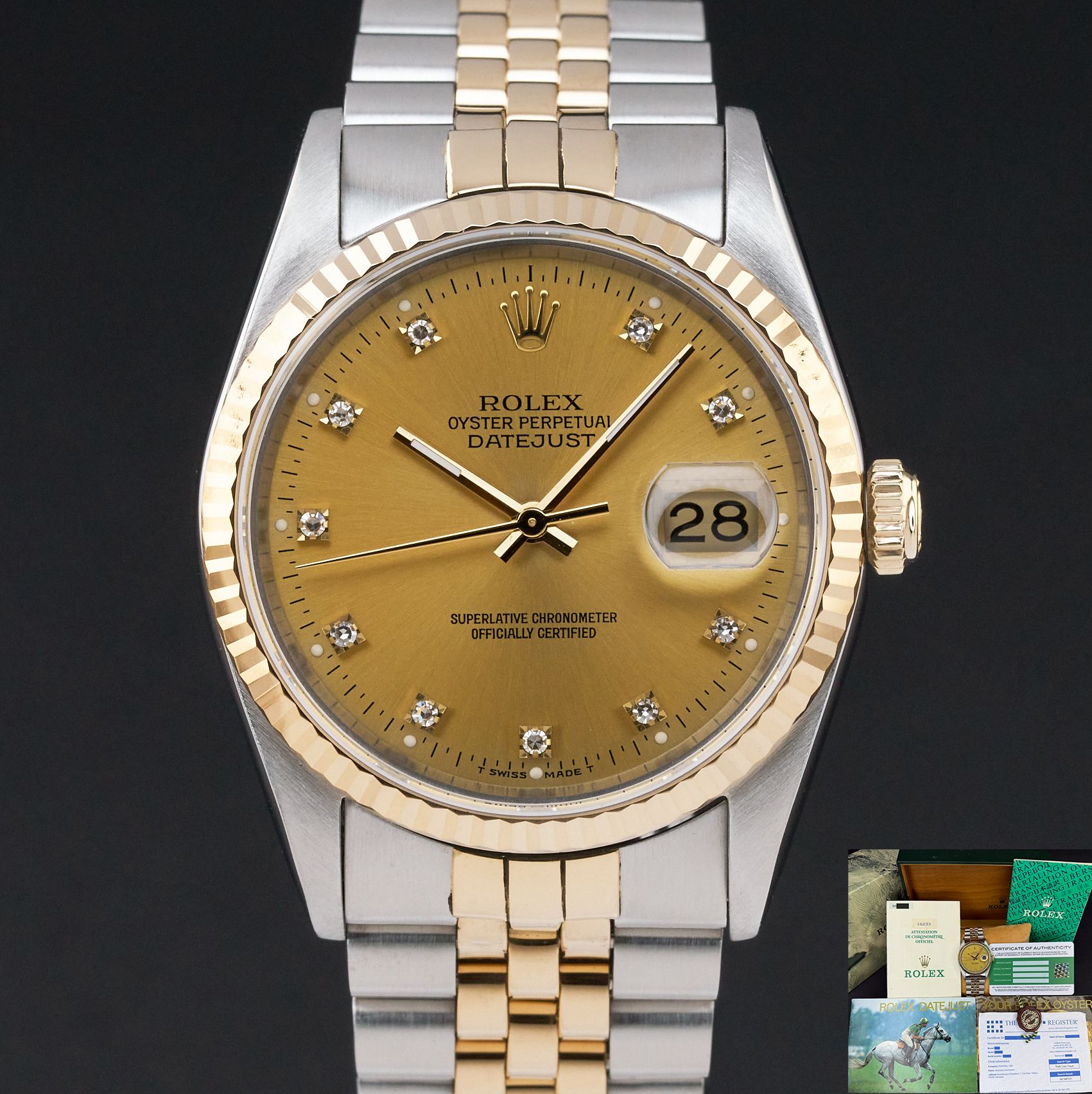 Rolex Datejust 36 Rolex Datejust, 16233, 36mm, 1988, Two-Tone, Champagne Small Diamond dial, Fullset, 1y warranty