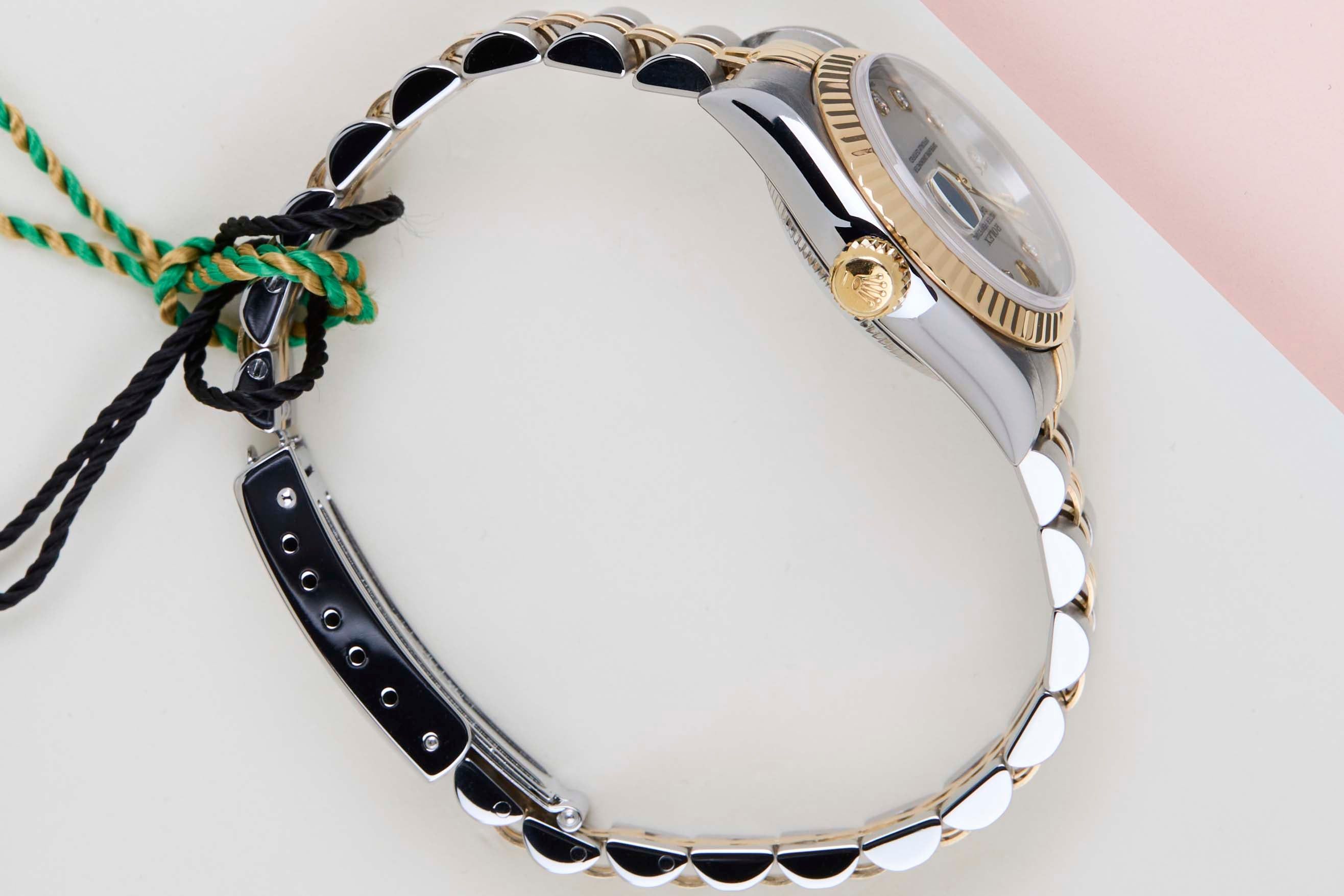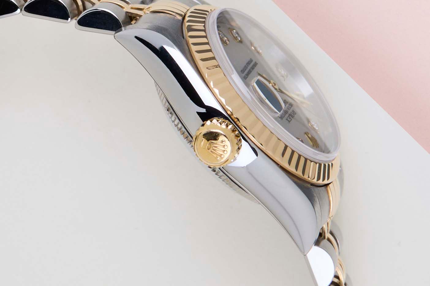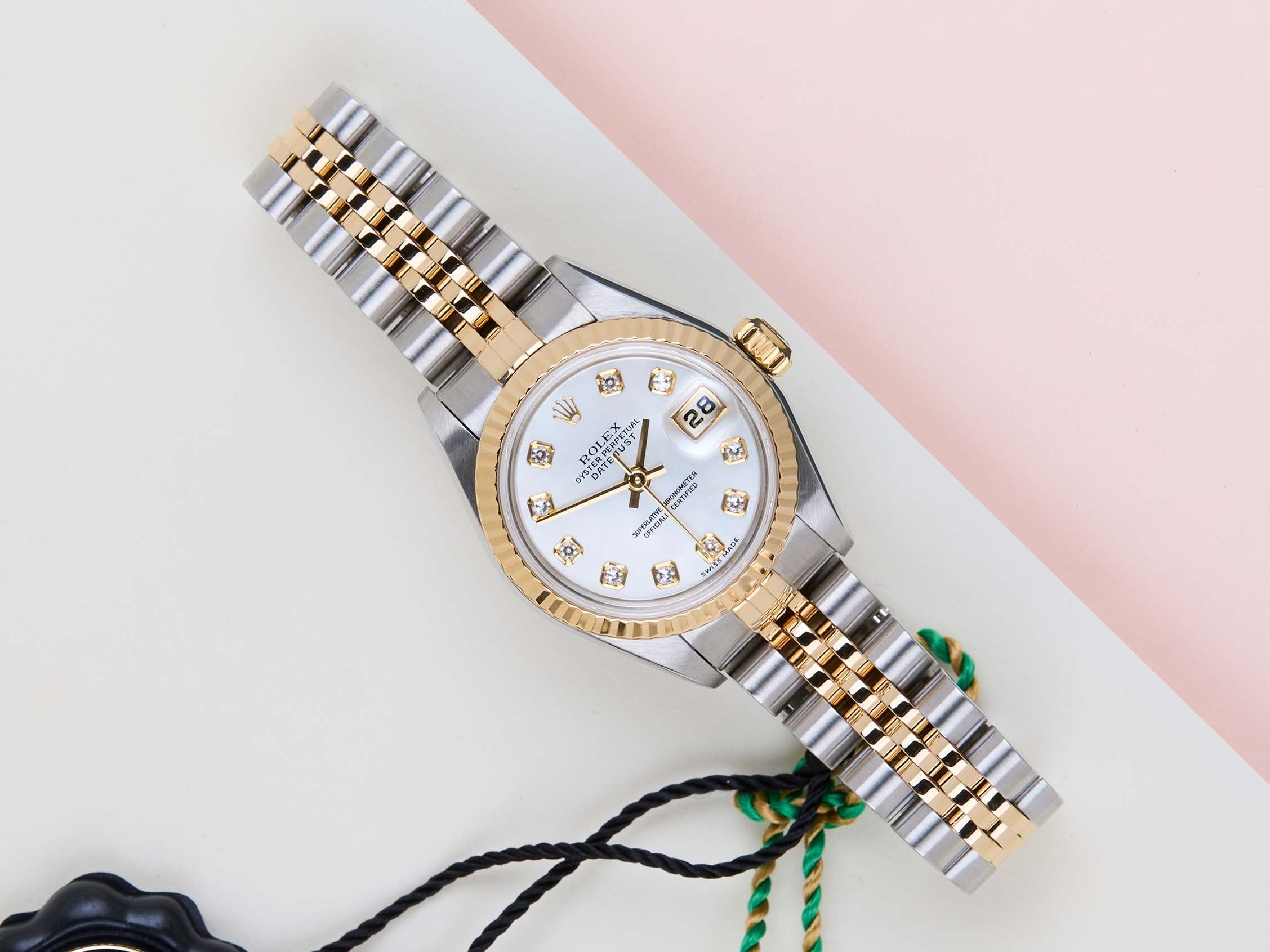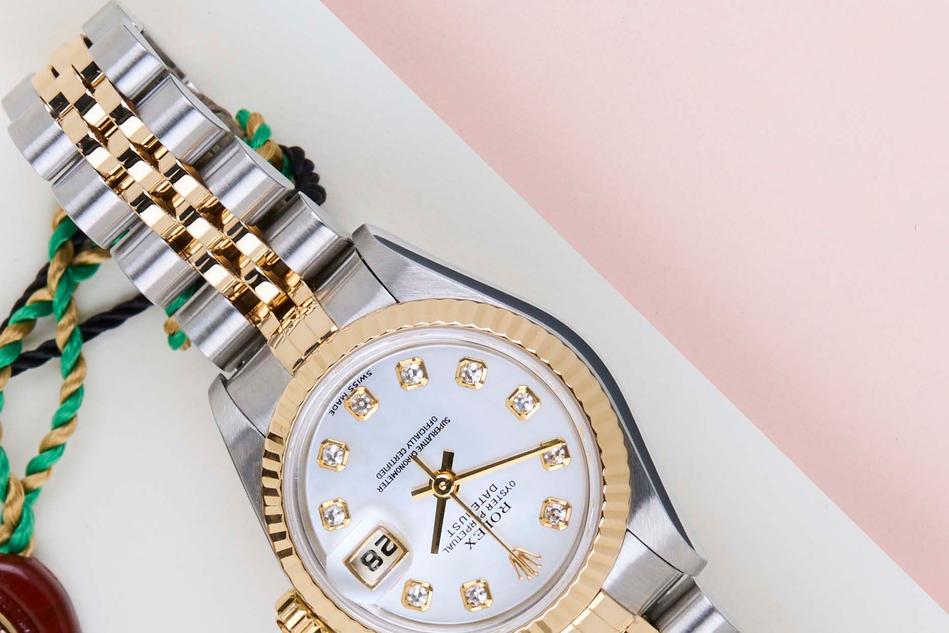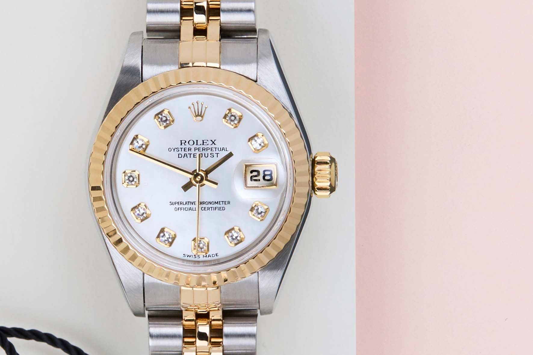 Rolex introduced the original Datejust in 1945 to celebrate the company's 40th anniversary. Due to the enormous success, Rolex released the first Lady-Datejust in 1957.This Datejust is made out of a combination of 18k Yellow Gold and stainless steel which is fitted with a Jubilee bracelet, and comes with a Mother of Pearl Diamond dial. Each mother of pearl dial is a unique piece and it is impossible to encounter an identical dial. Having the ability to change color, depending on the light, gives it a nature full of mystery and surprises.This Rolex Datejust 26 is in mint condition and comes with the original Rolex box. Furthermore, the watch has been serviced by our watchmaker, and therefore it comes with one year of Steiner warranty.
