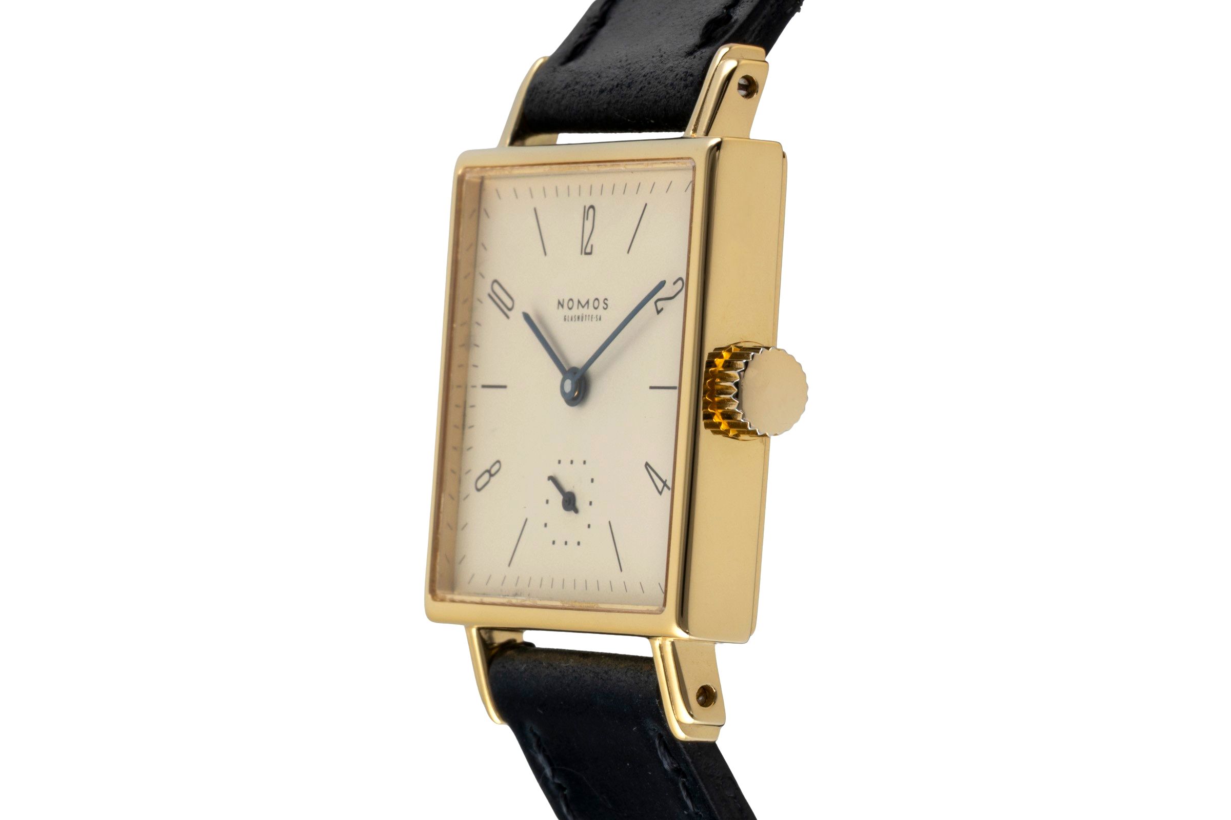 Alternative title: NOMOS 413 Glashütte - Tetra Gold; Nomos Glashütte Tetra 18K Gold (0,750) Handaufzug Herrenuhr Ref. 401 B&P 1997 [2600704]