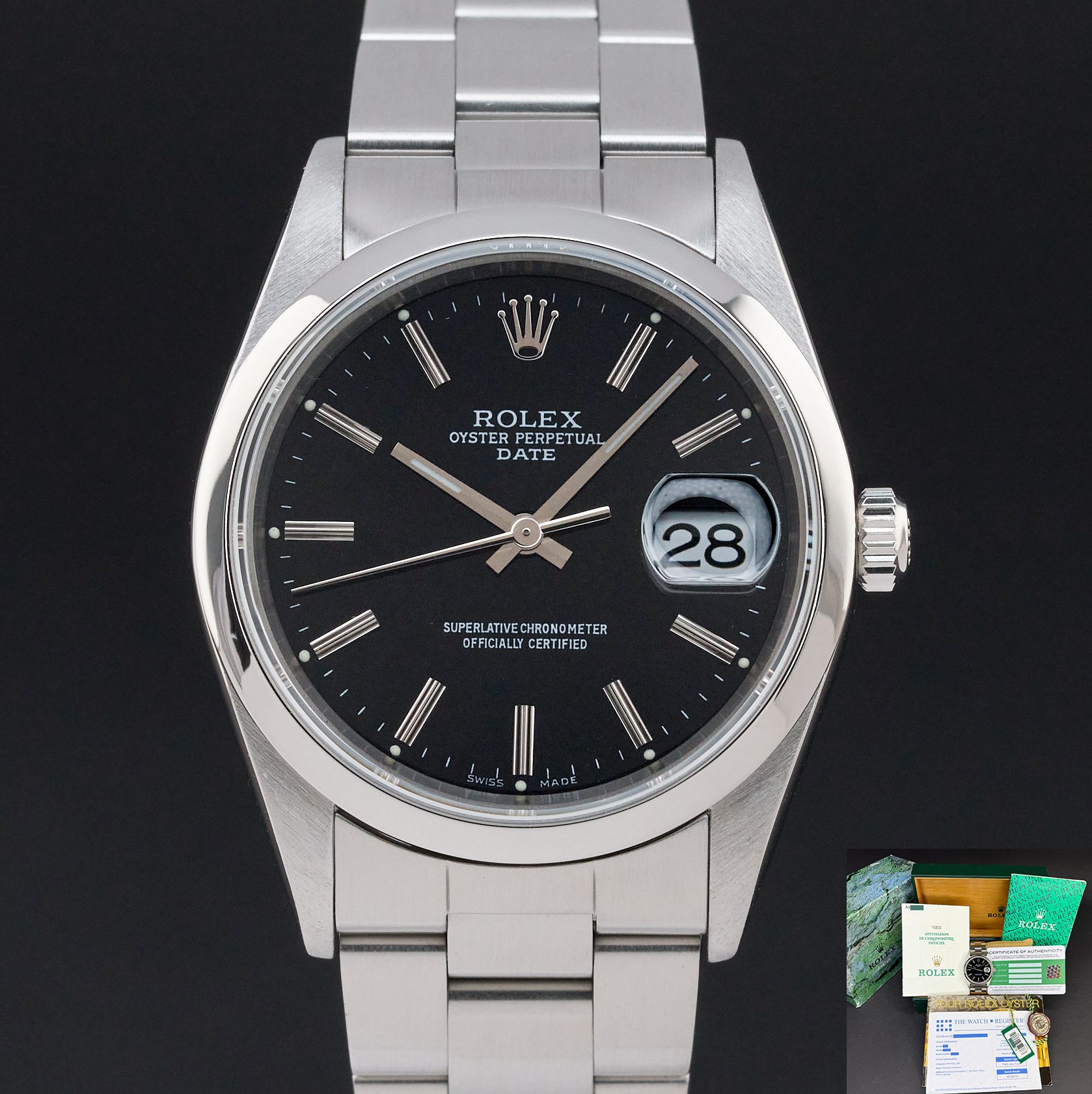 Rolex Oyster Perpetual Date, 15200, 34mm, 1999, Steel, Black dial, Fullset, 1y warranty